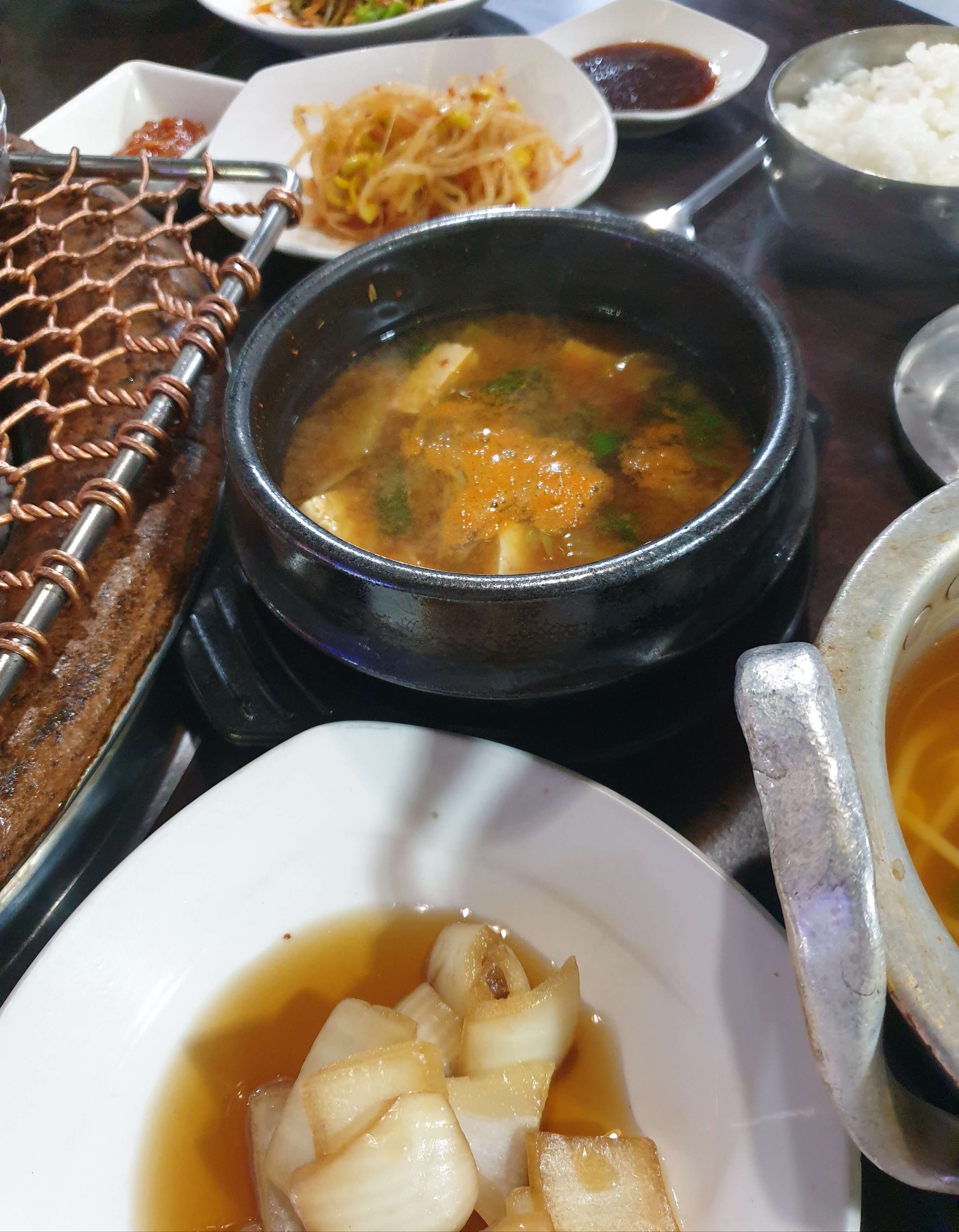 된장찌개는 따로 시켰고, 콩나물 국은 따라 나온다.