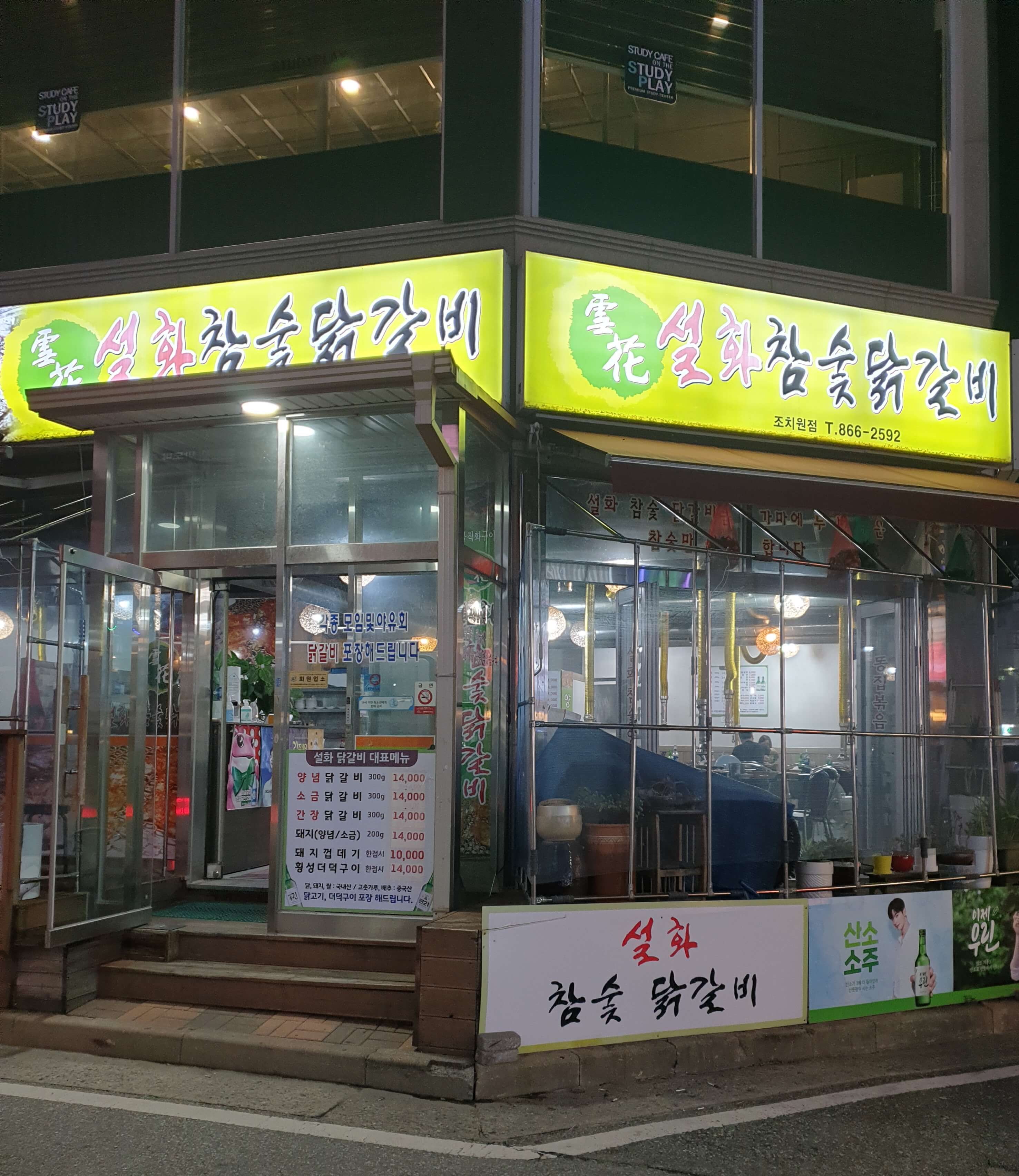 어머니는 한 번도 안 드셔 본 파닭을 사드리고 싶었는데 홀이 있는 신흥 닭집이 하필 홀 마감이라고 해서 오픈한 곳을 찾다가 설화 참숯 닭갈비에 들어갔다.