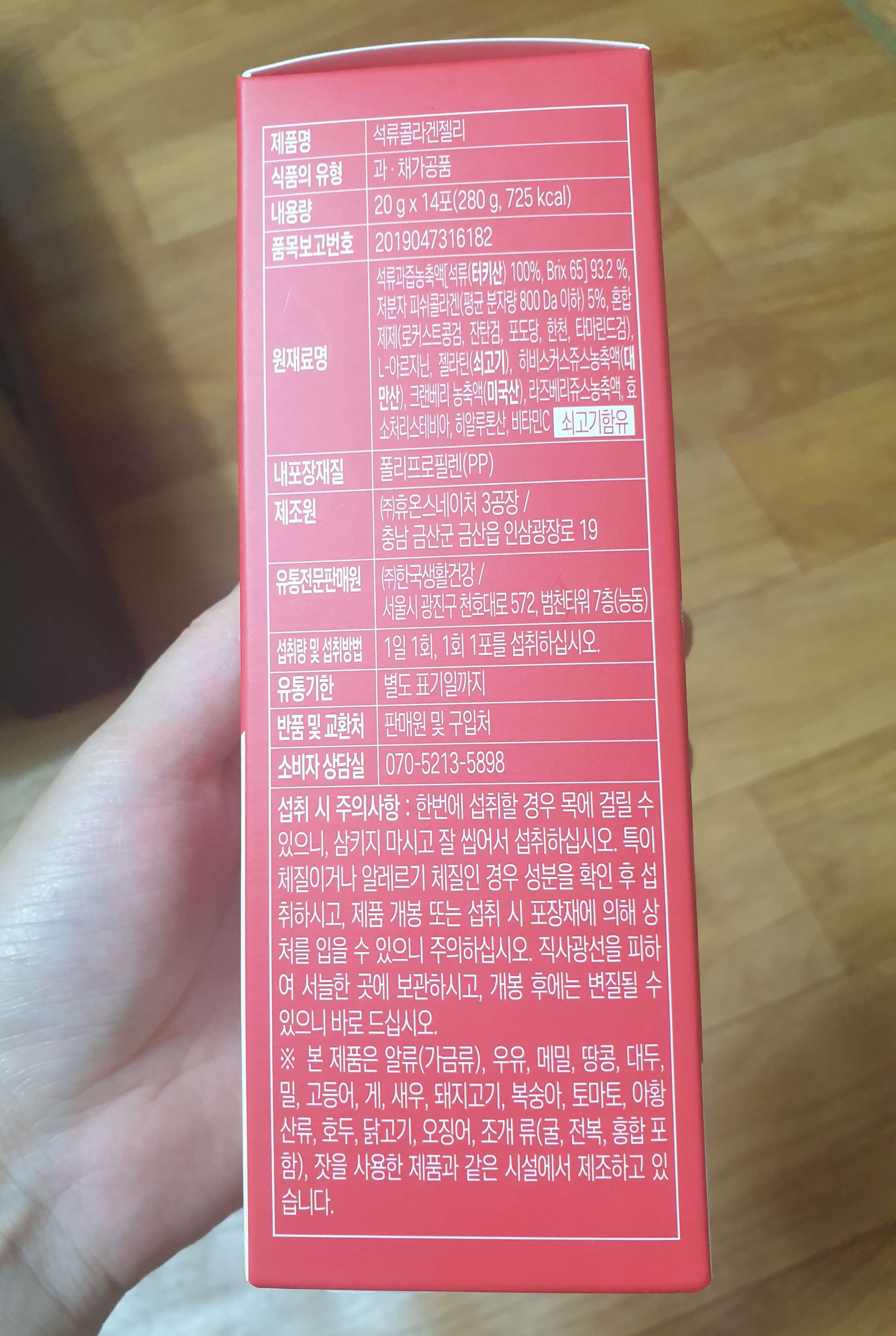 석류 과즙 농축액 93.2%와 저분자 피쉬콜라겐 5%가 들어있다고 한다.