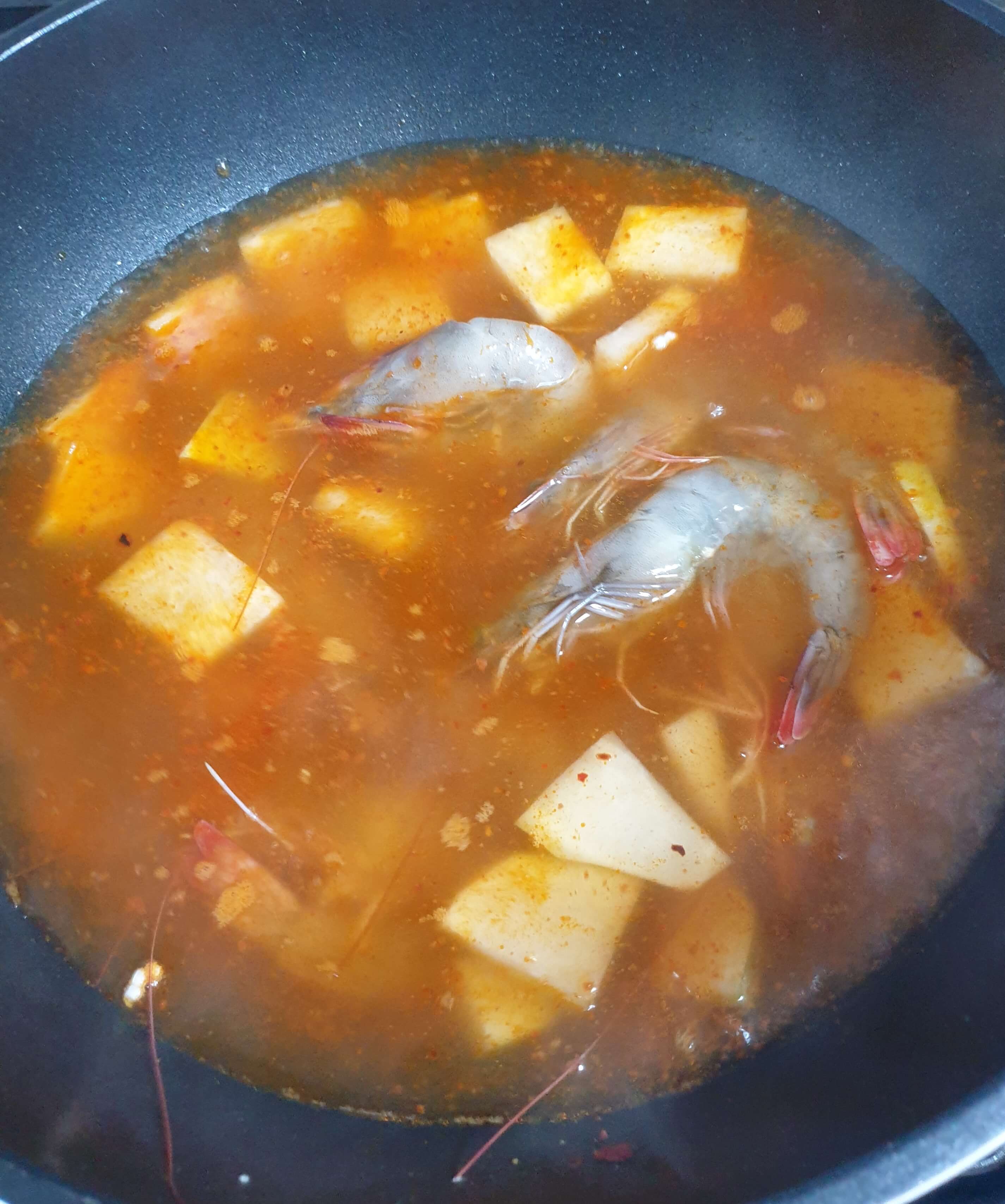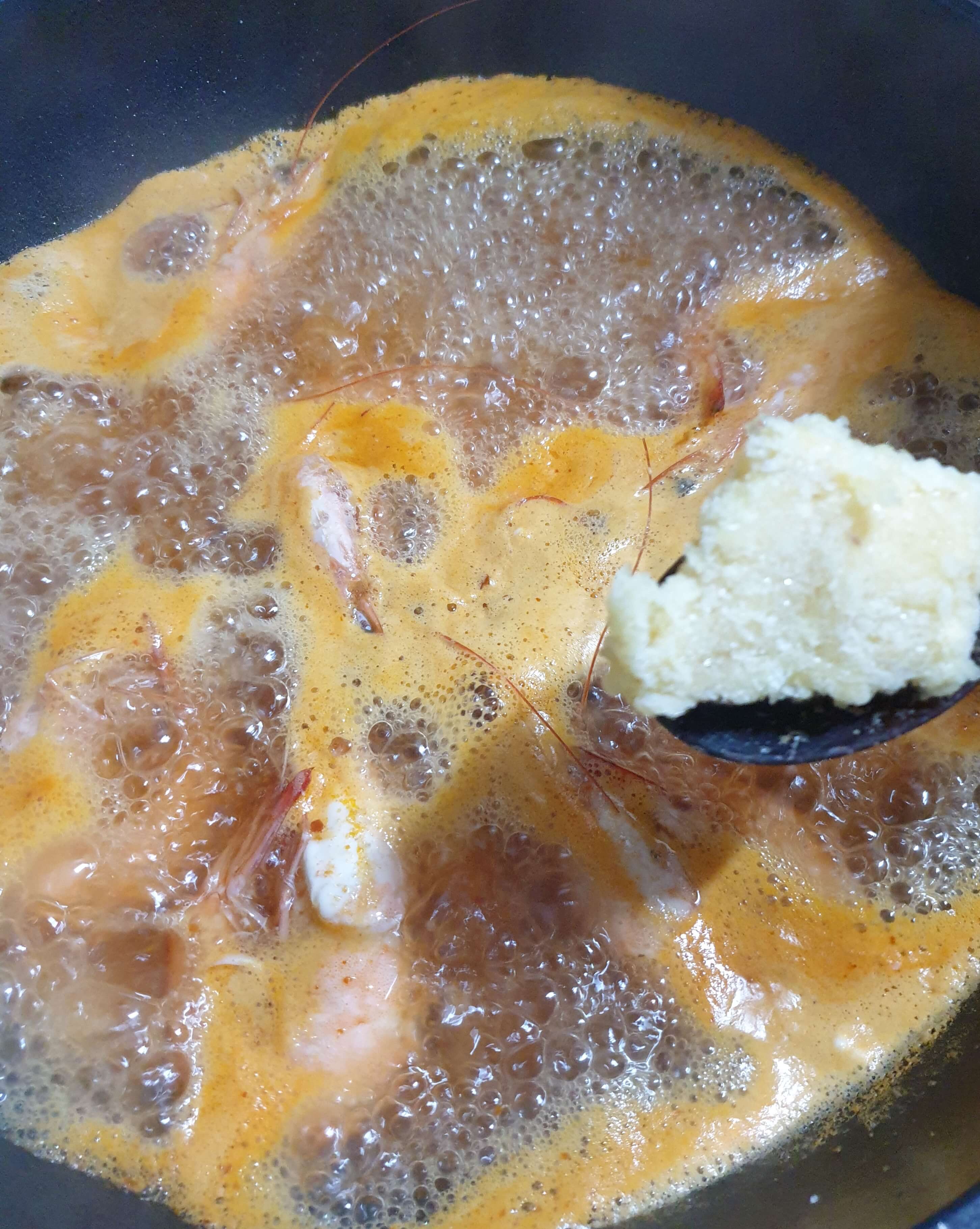 씻어놓은 대하 약 8마리를 넣어주세요.