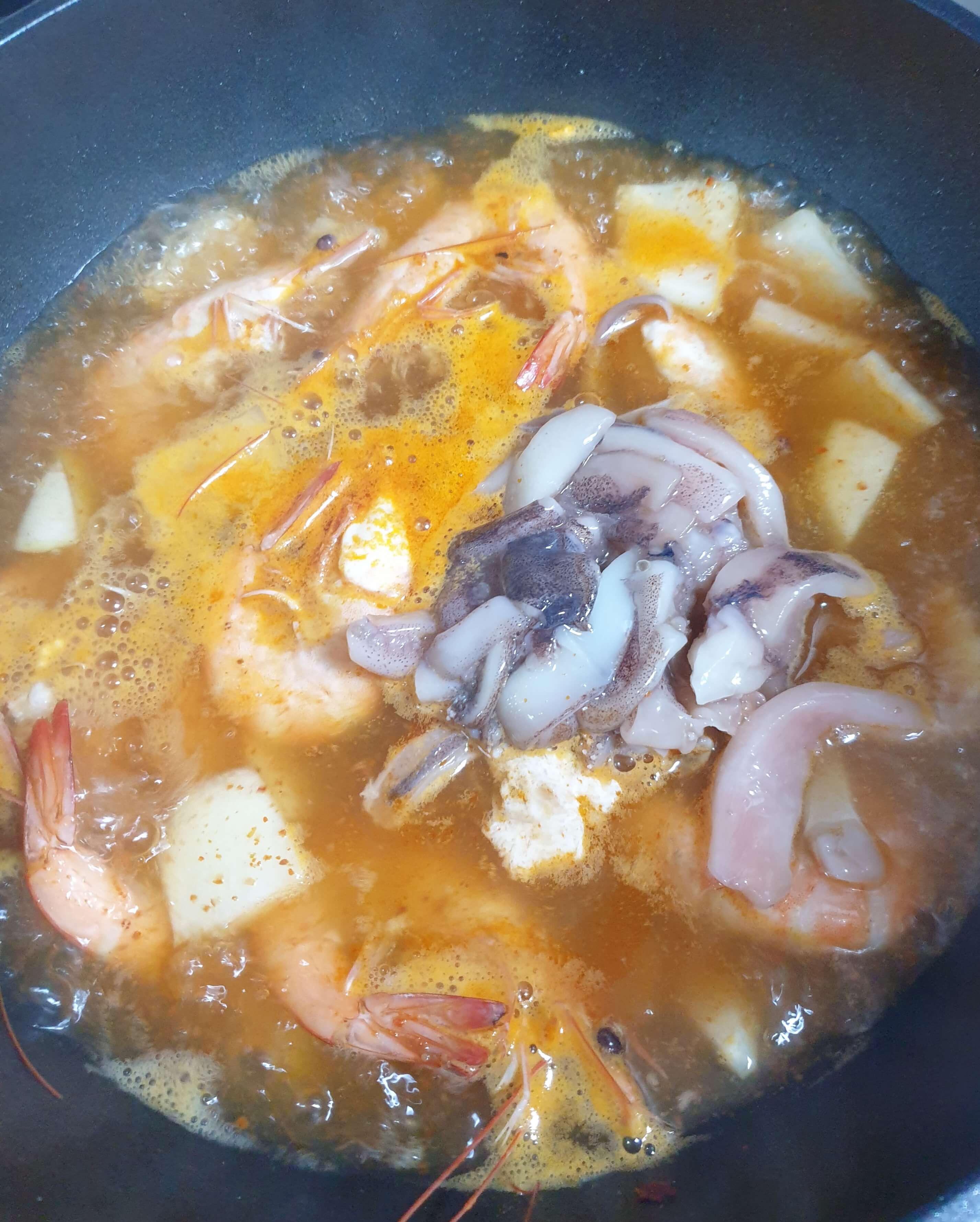 오징어는 오래 끓이면 질겨지기 때문에