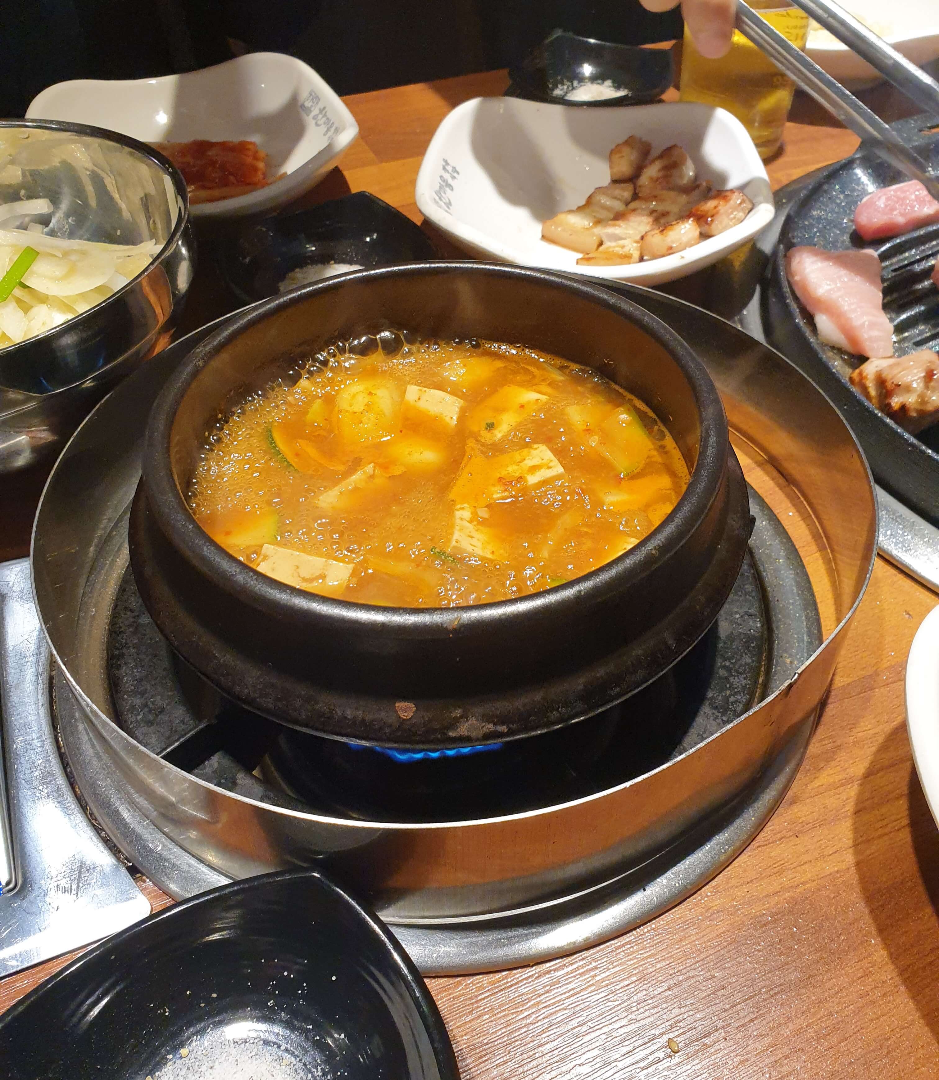 된장찌개는 깜빡하고, 고기만 공략했더니, 나중에 된찌가 엄청 짜졌다...