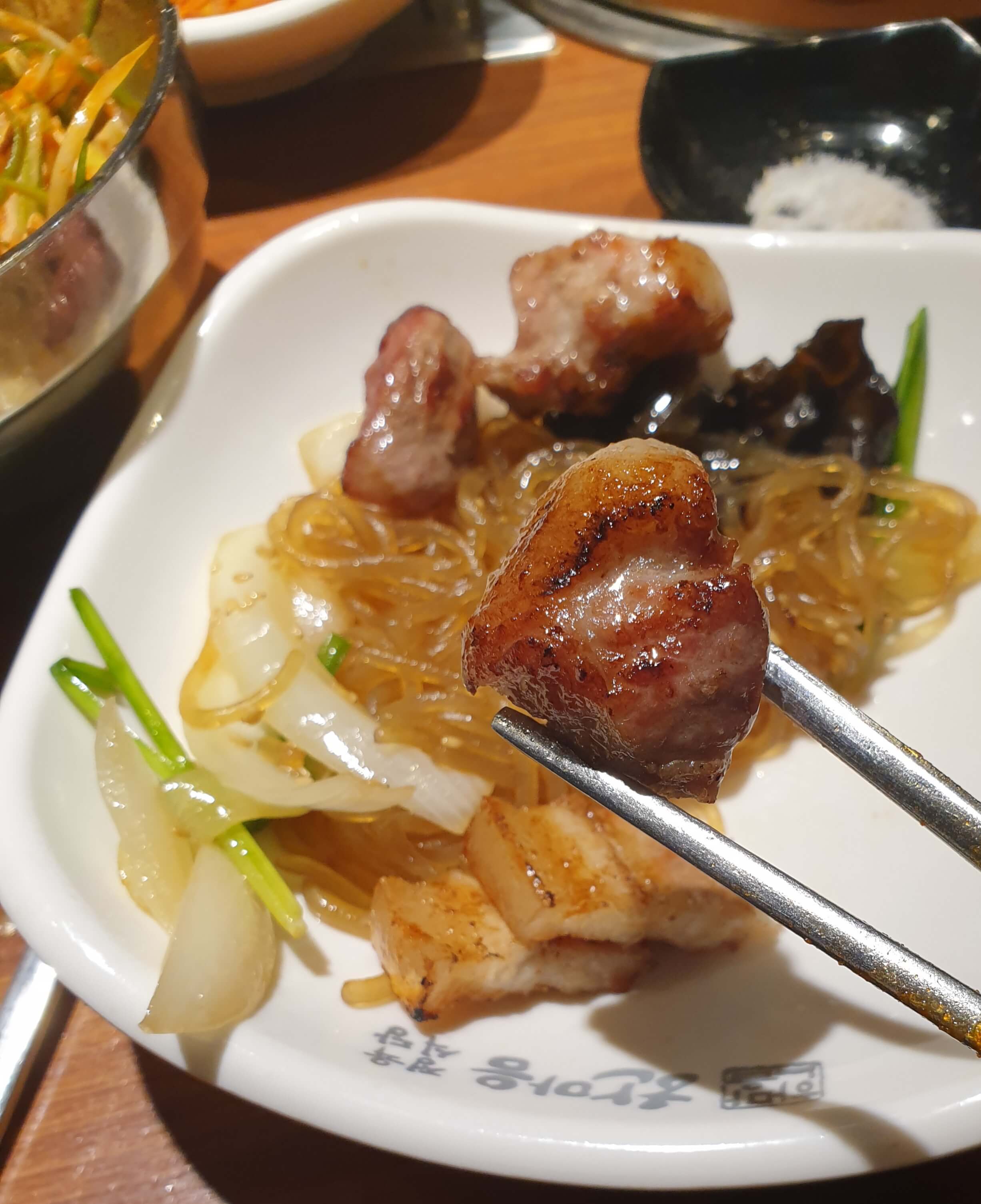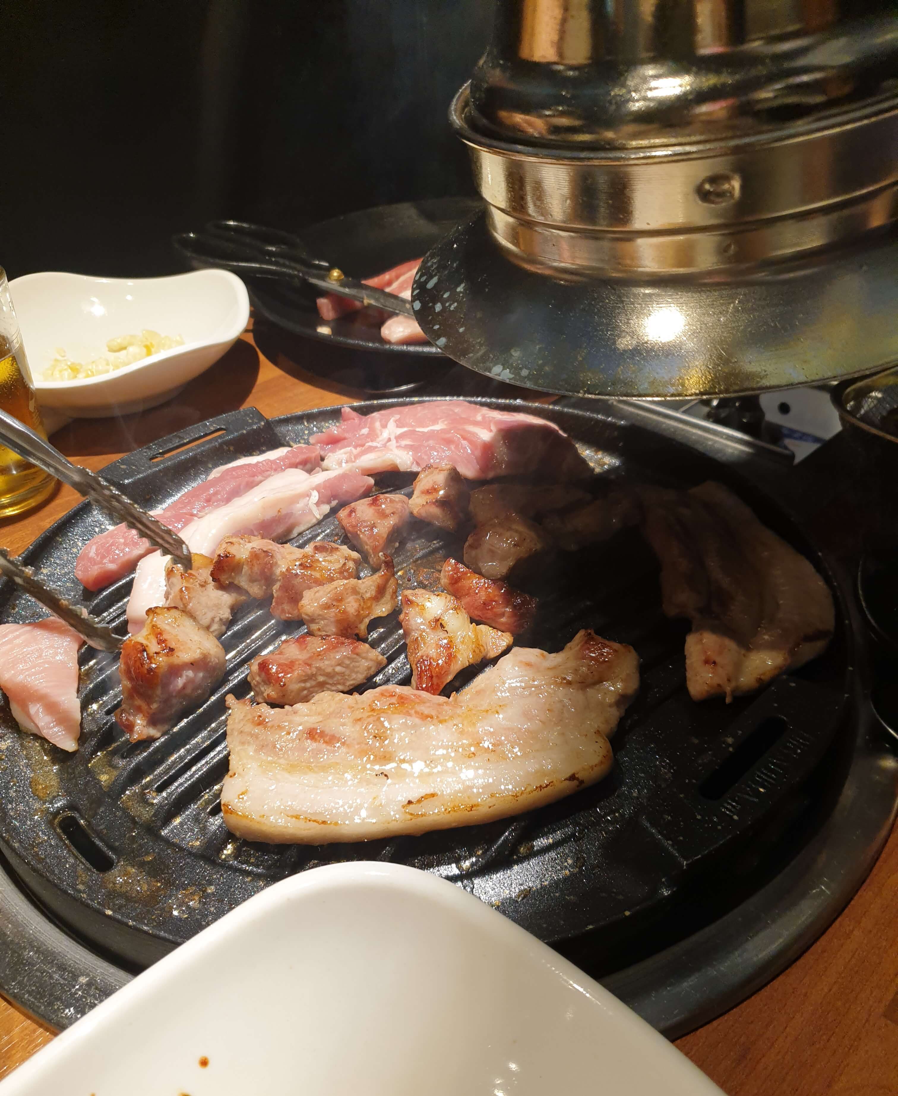 돼지고기는 삼겹살, 오겹살, 목살, 가브리살, 항정살이 나오는데 사진 찍은 부위가 어딘지는 정확히 모르겠지만 제일 맛있어서 찍었다.