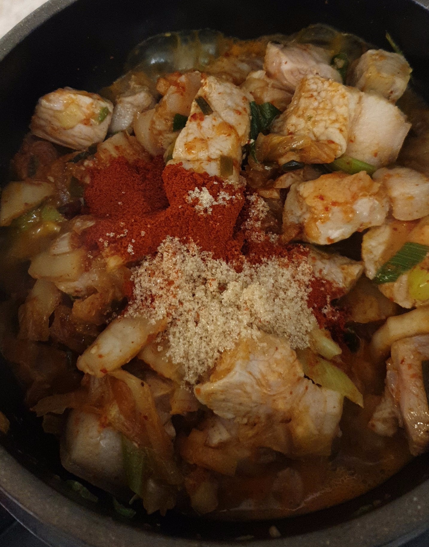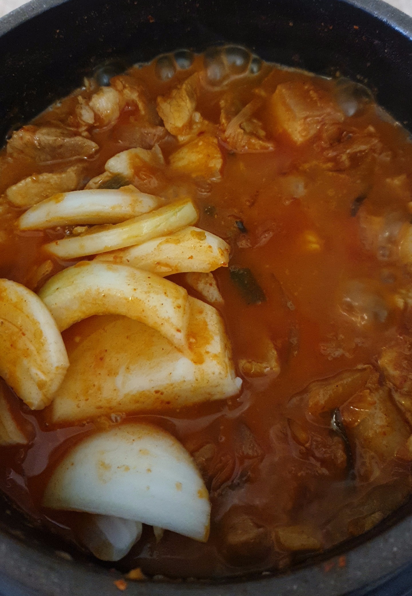 집에서 돼지고기 넣고 짜글이를 끓여 먹어요