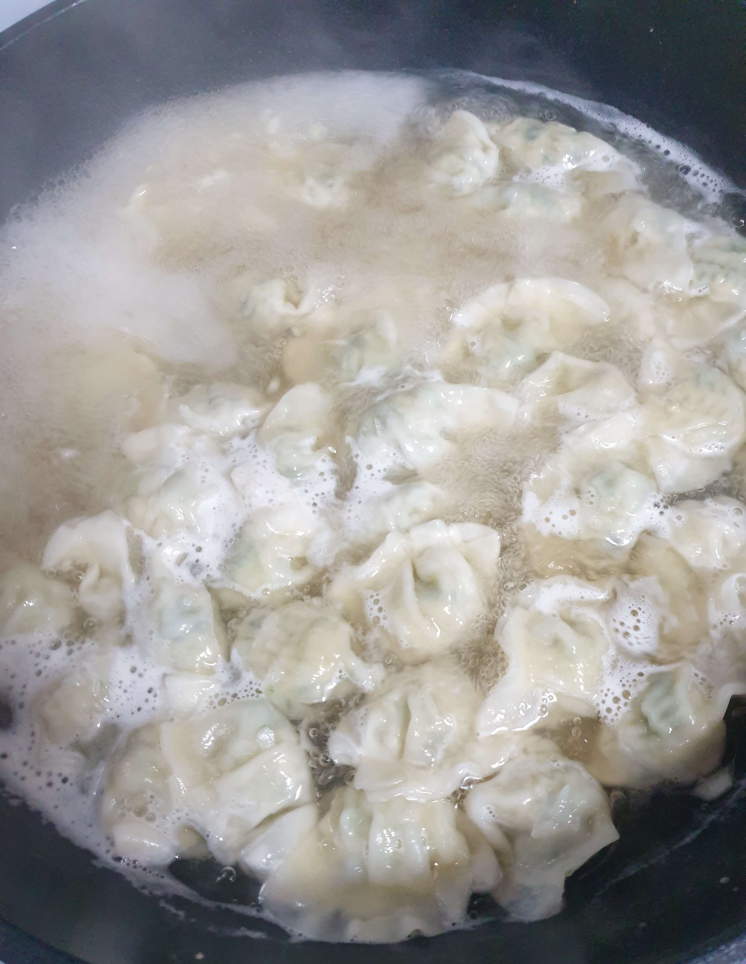 물이 팔팔 끓고 만두가 다 익었을 때