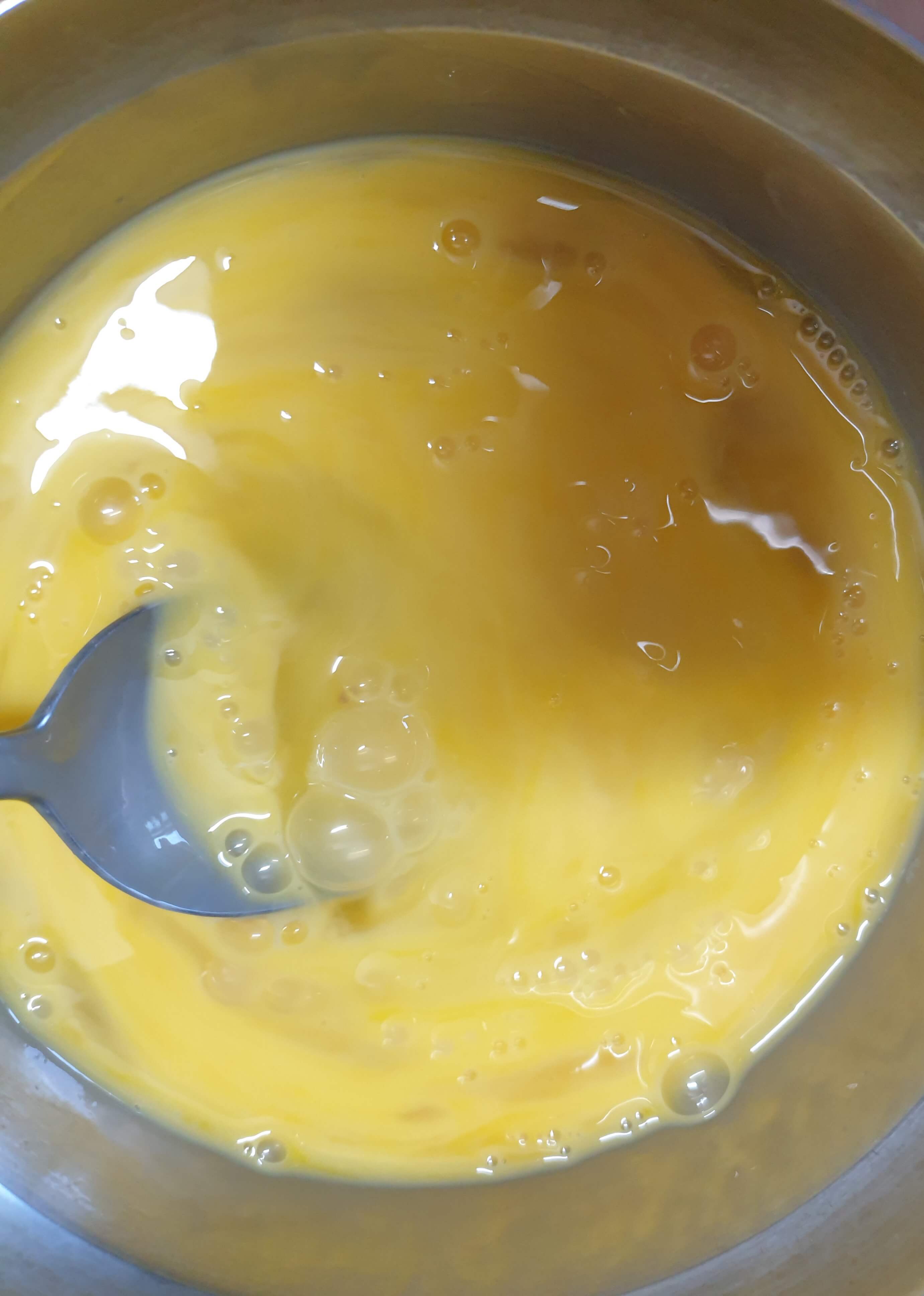 풀어놓은 계란을 한 바퀴 둘러주세요.