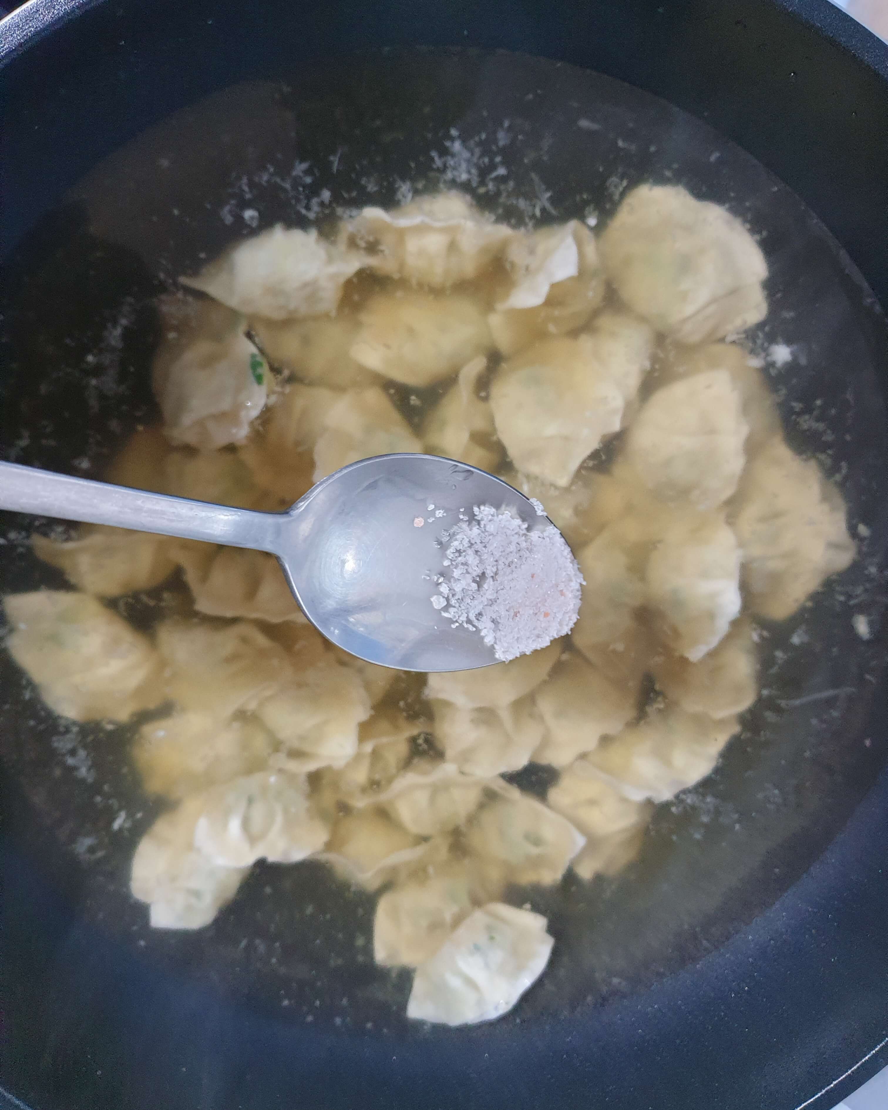 물이 끓기 시작하면 소금으로 간을 해주세요.