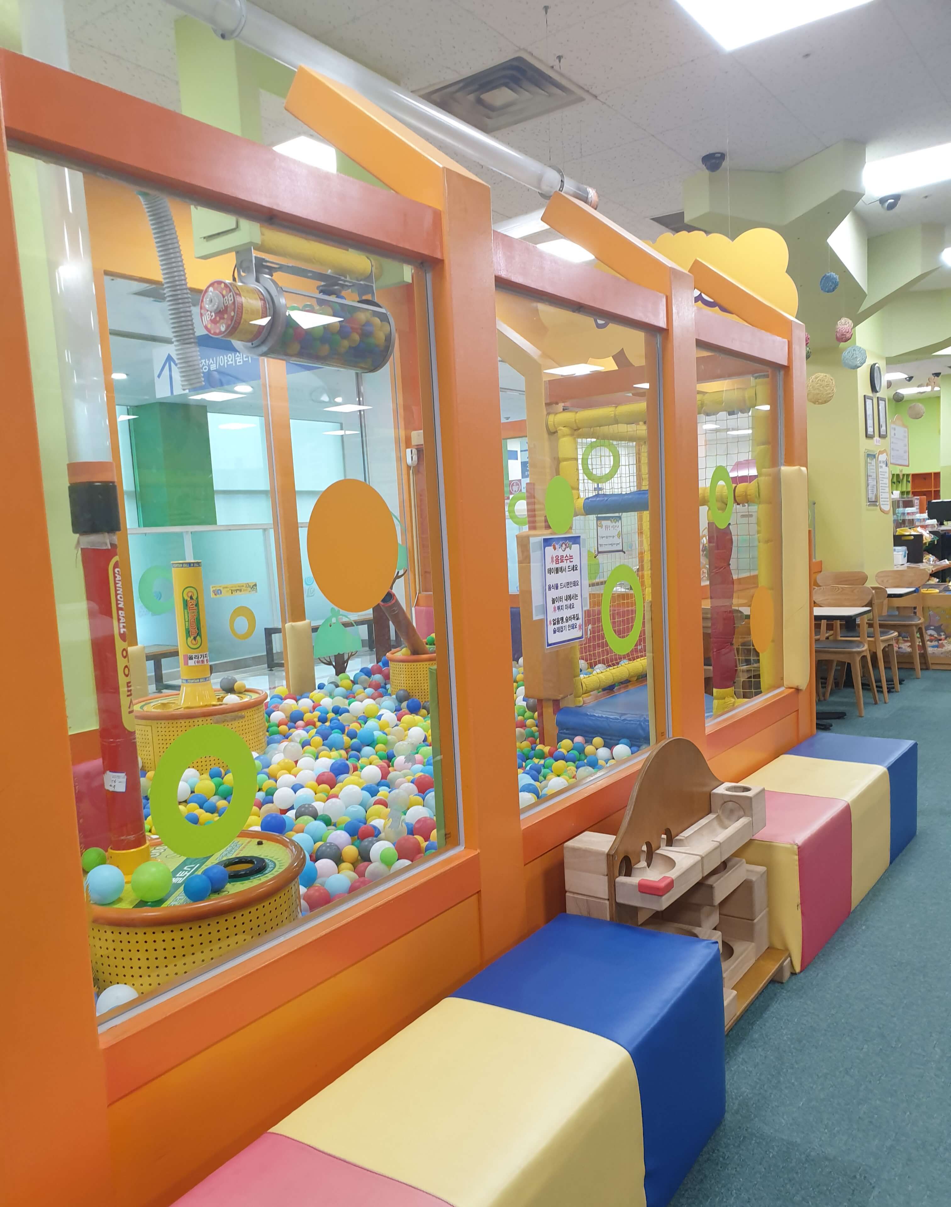 공 넣고 버튼 누르는 기계가 여러 대 있어서 재미있게 놀았다.