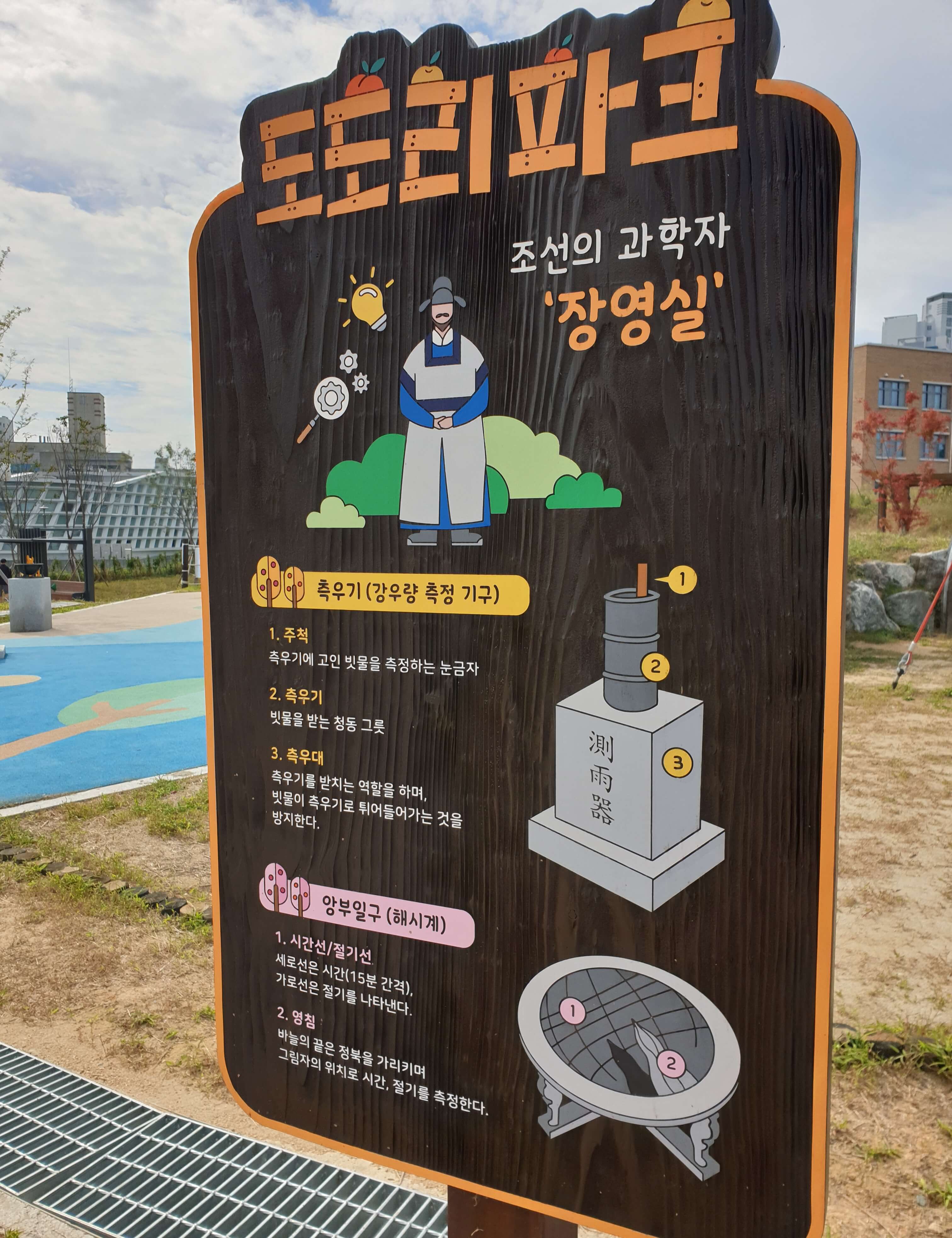 측우기와 해시계 모형