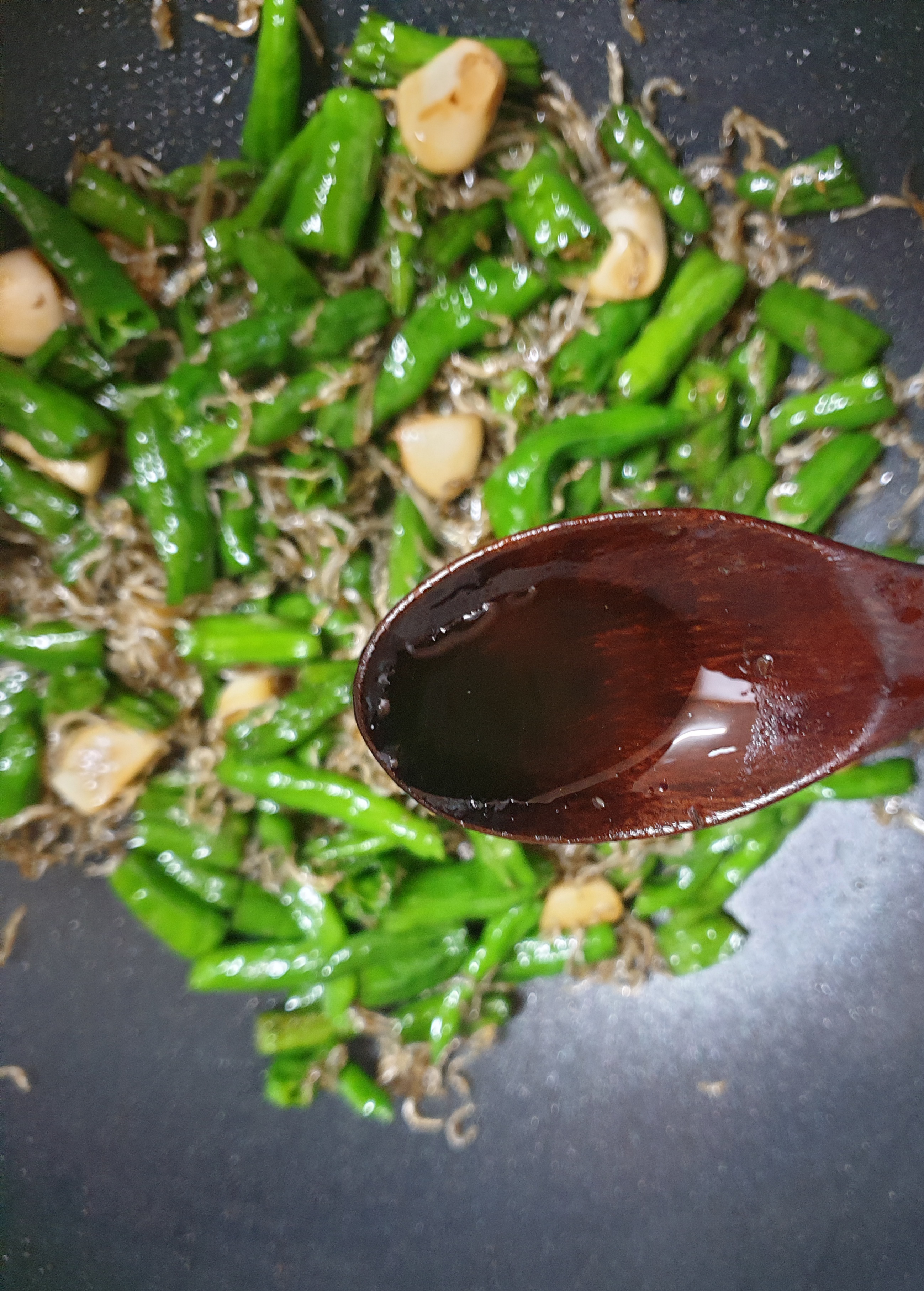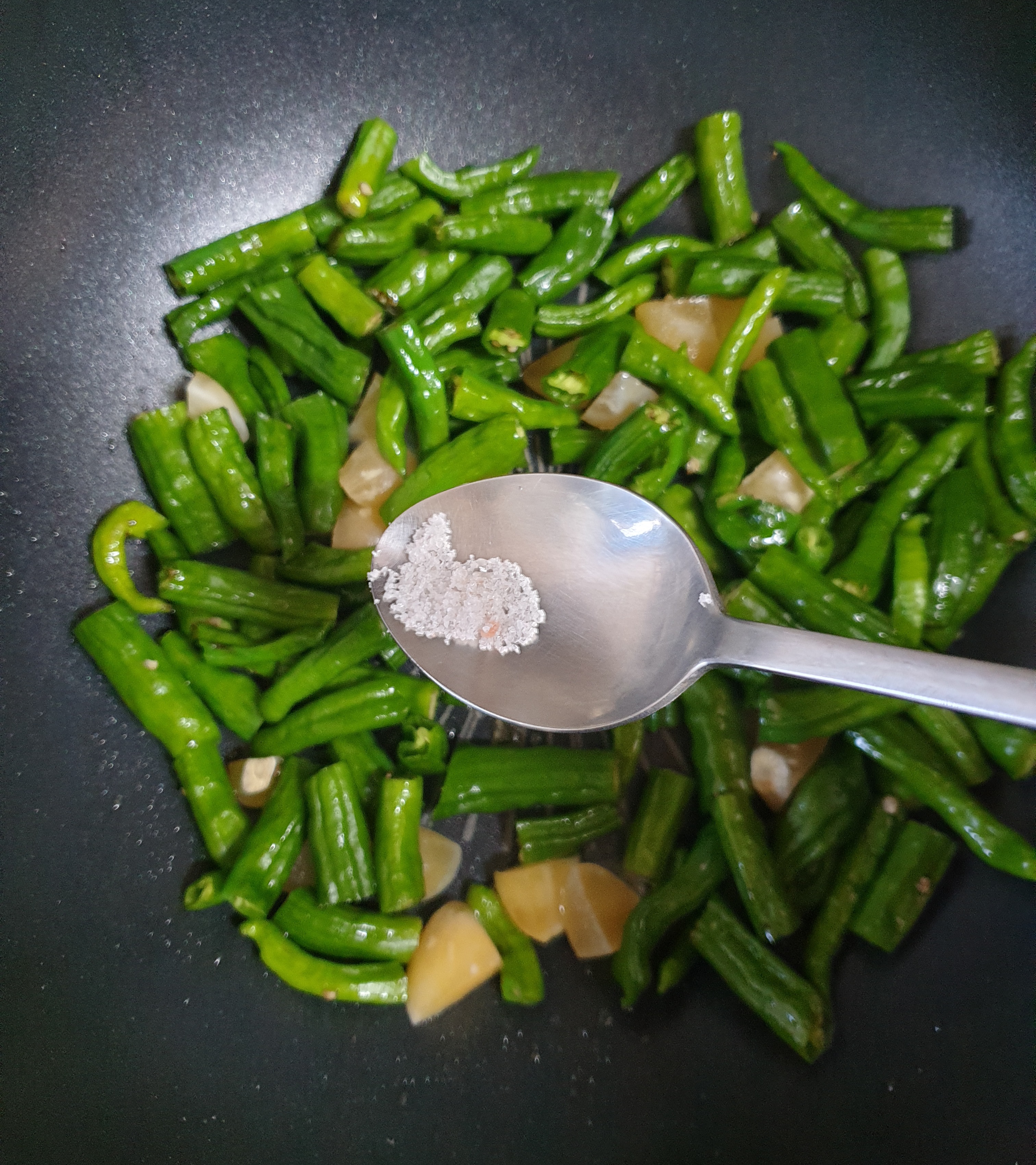 마늘이랑 고추가 다 볶아지면