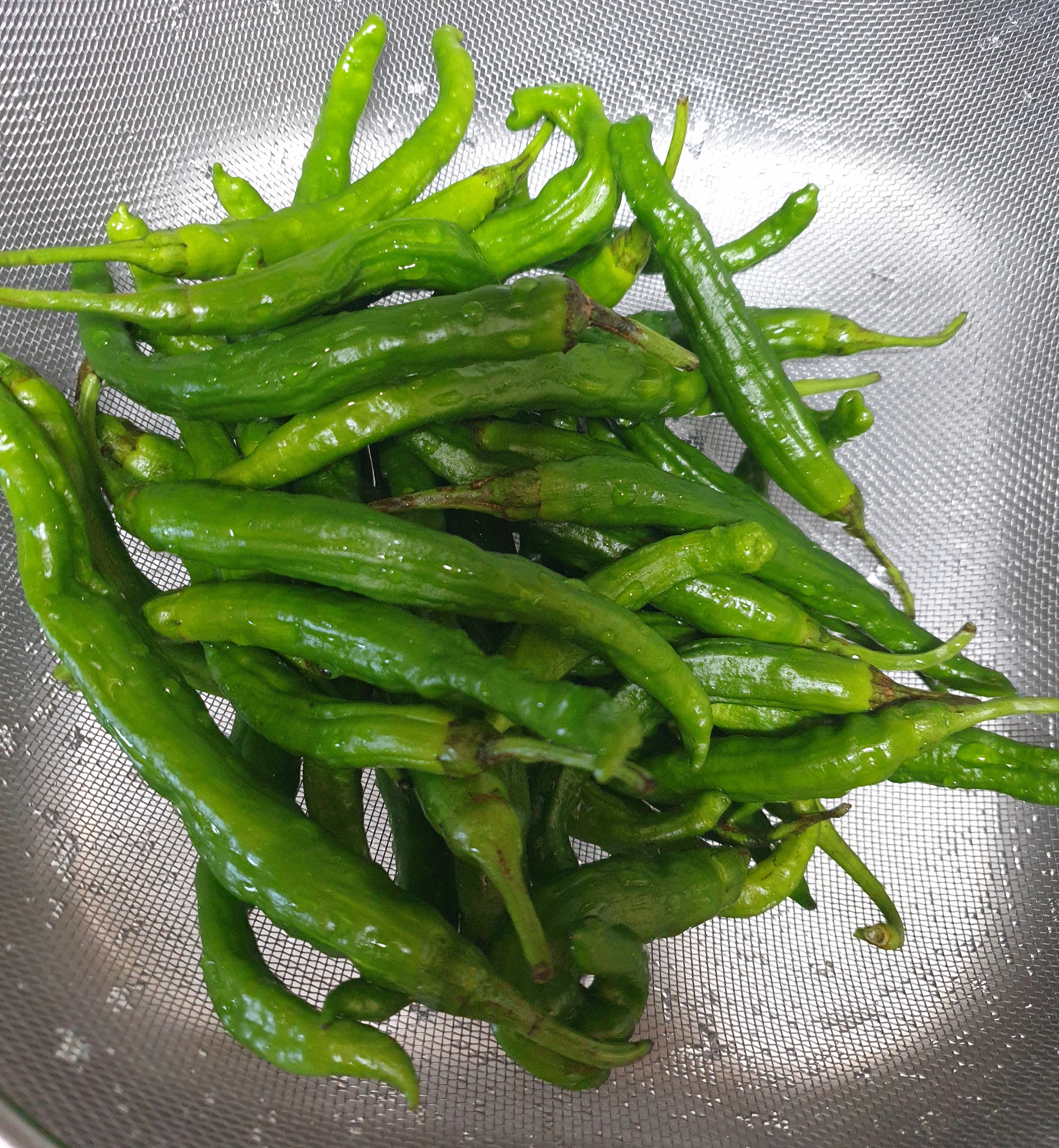 꽈리고추 한 봉지를 깨끗이 씻어 주세요.