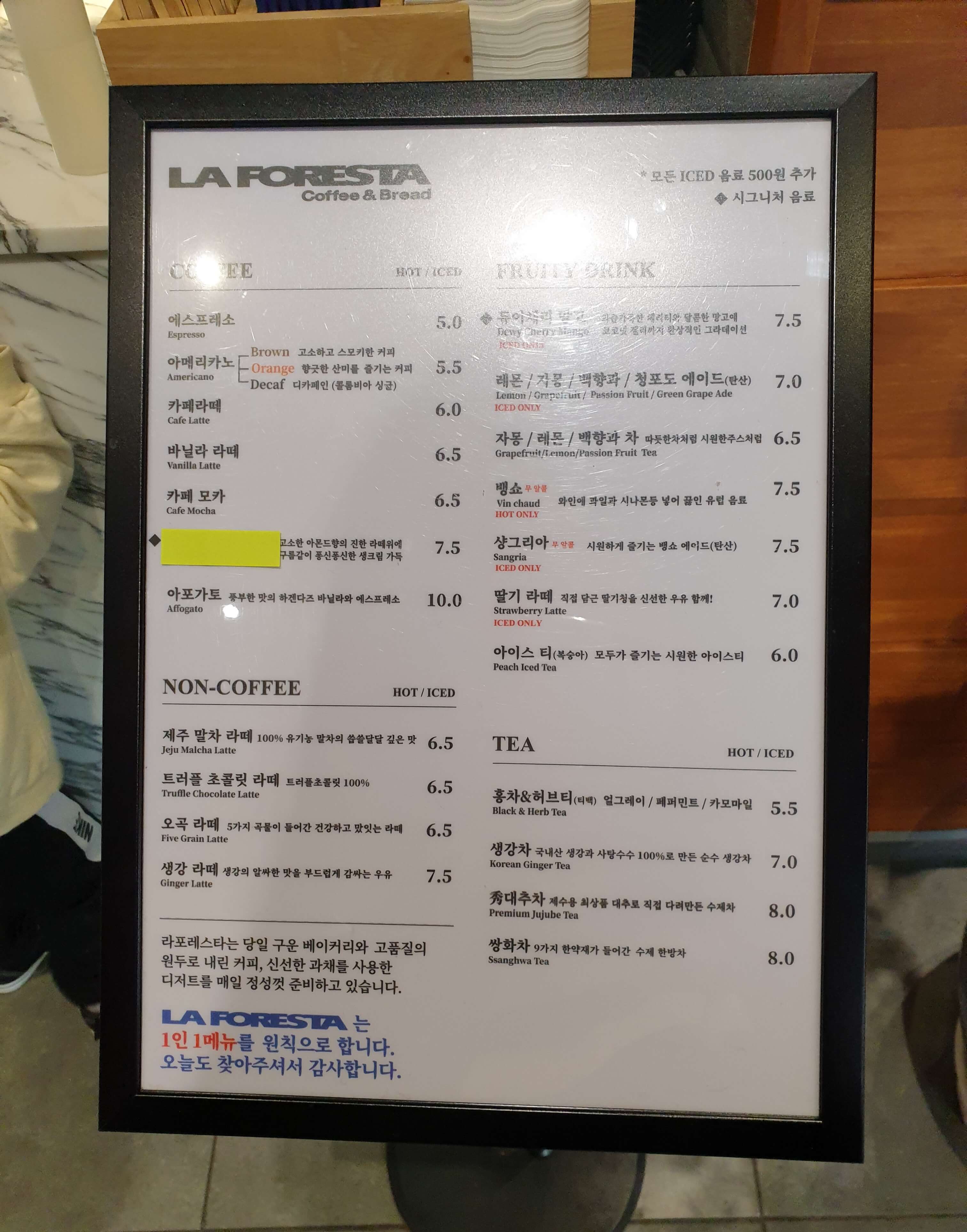 지난번에 갔던 고복저수지 에브리데이 선데이도 그렇고 라포레스타도 그렇고 생각보다 메뉴가 다양하지 않은 것 같다.