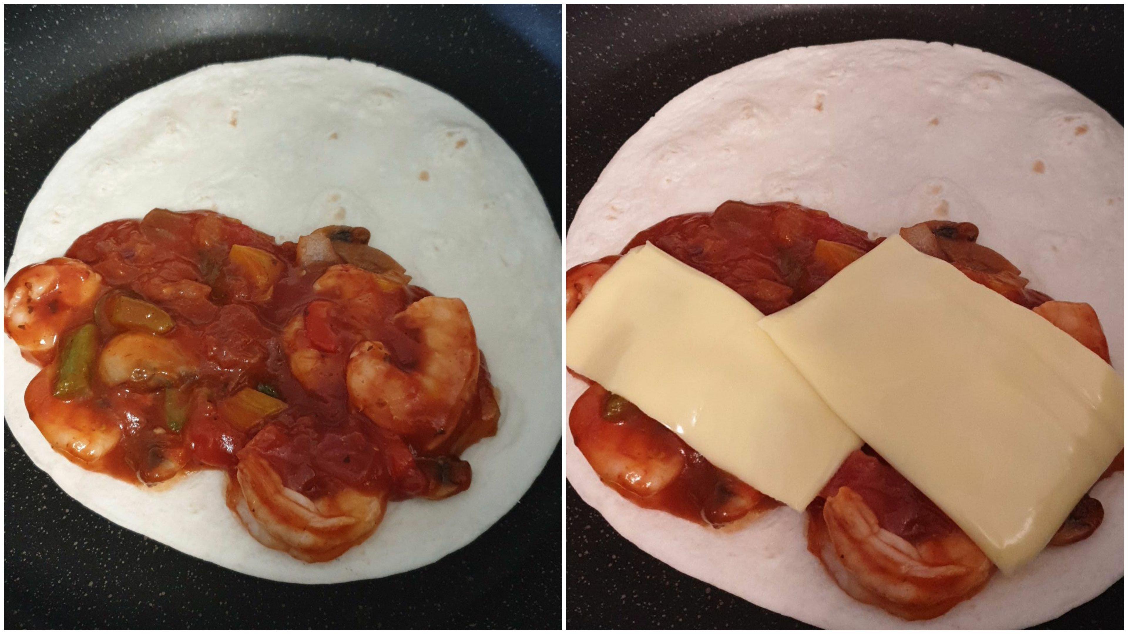 재료- 새우, 양송이 버섯, 파프리카, 양파, 캔 옥수수 등 넣고 싶은 야채, 또띠아