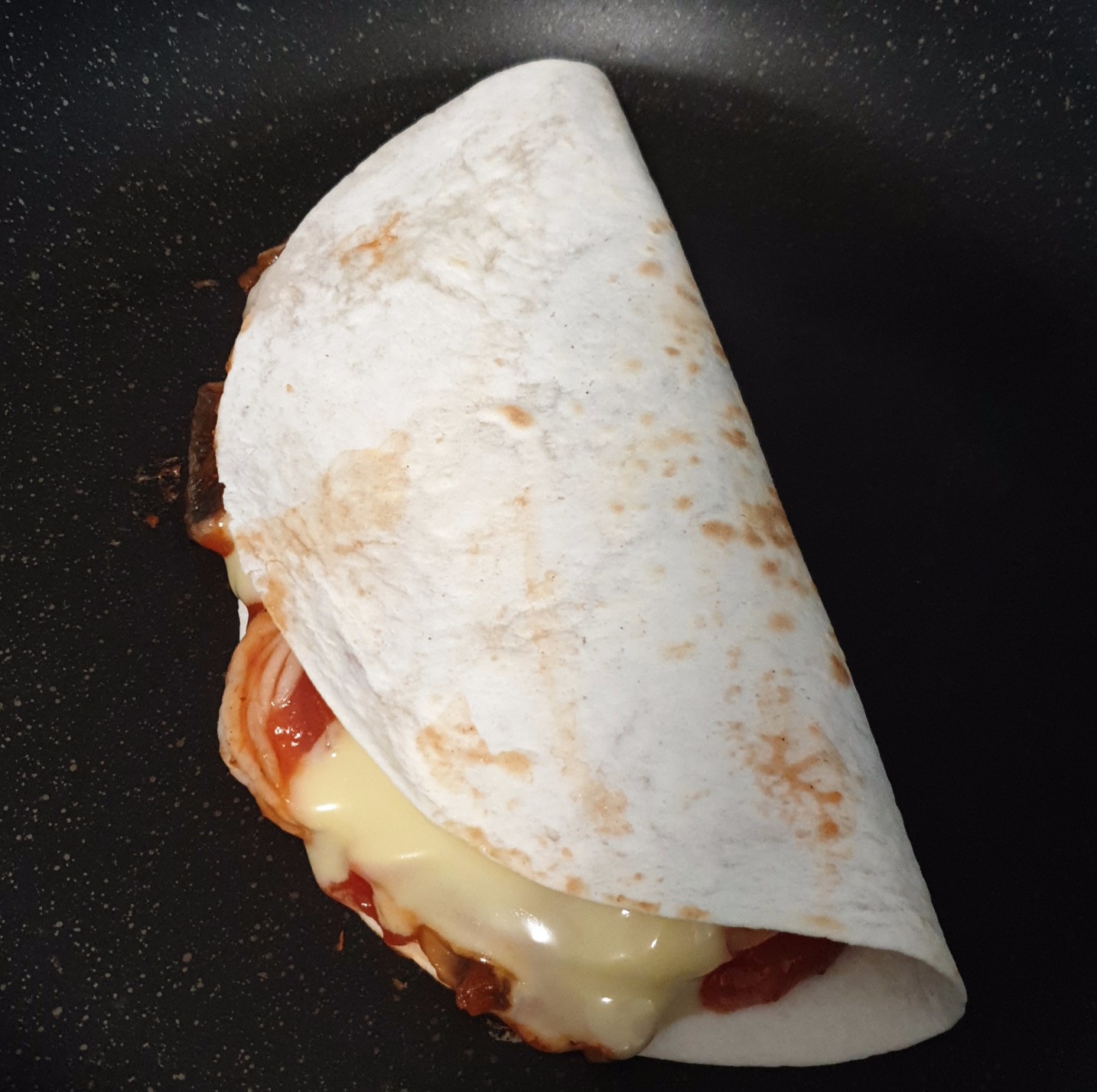 * 속재료를 전체적으로 올린 후 또띠아 한 장을 더 올려서