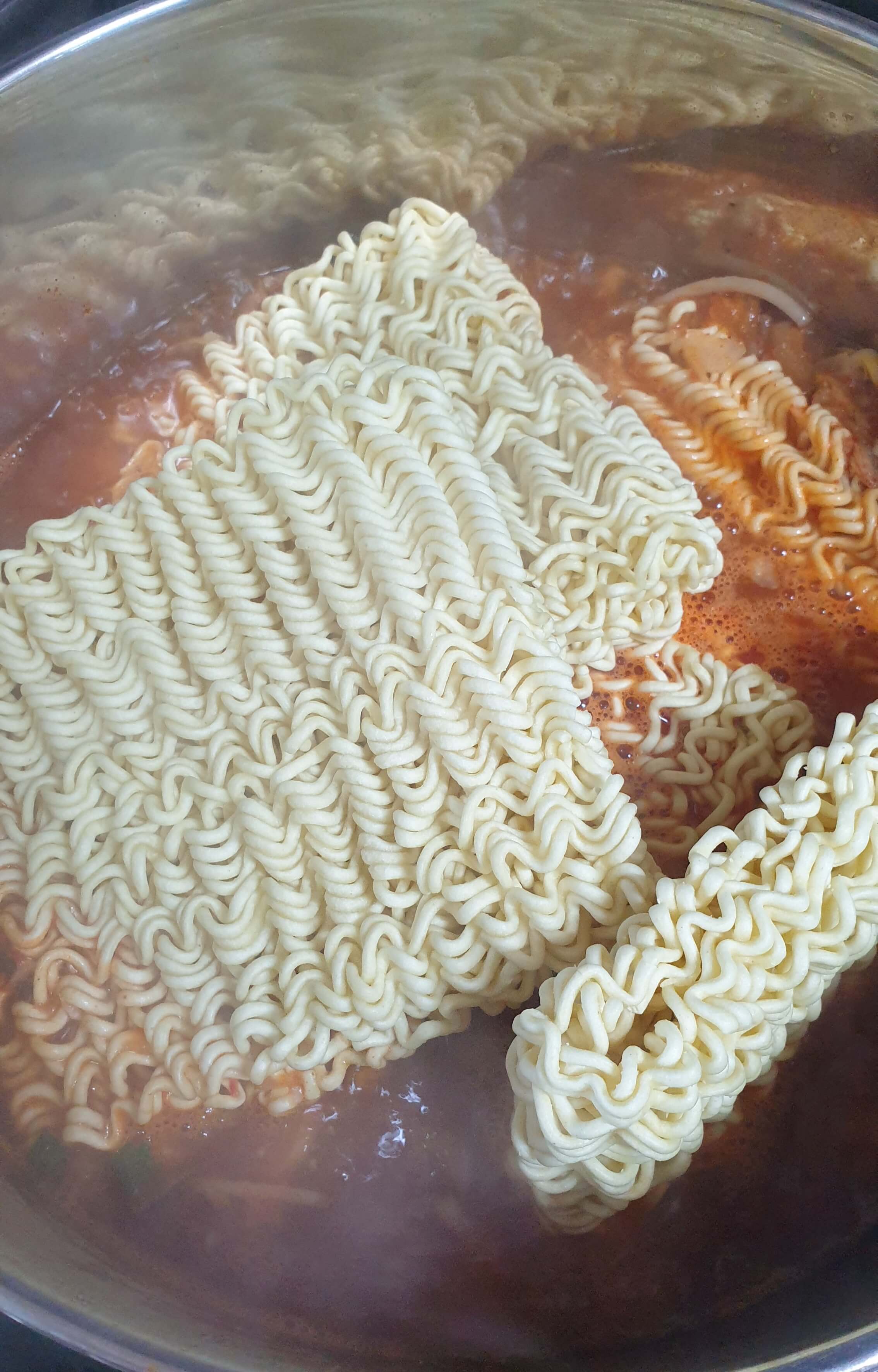 국물이 팔팔 끓으면 면을 넣고 풀어주세요.