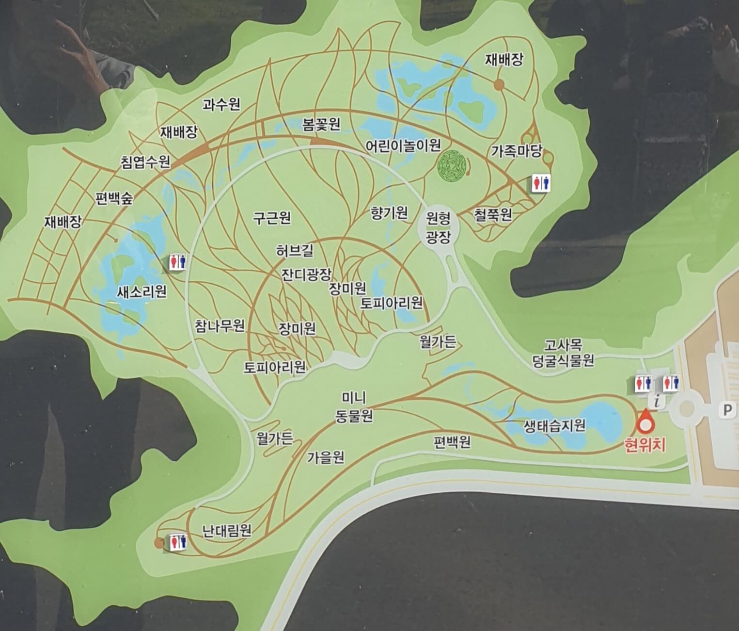 수목원이 상당히 넓고 화장실이 많지 않기 때문에 관람 전 화장실을 이용하는 게 좋다고 안내해 놓았다.
