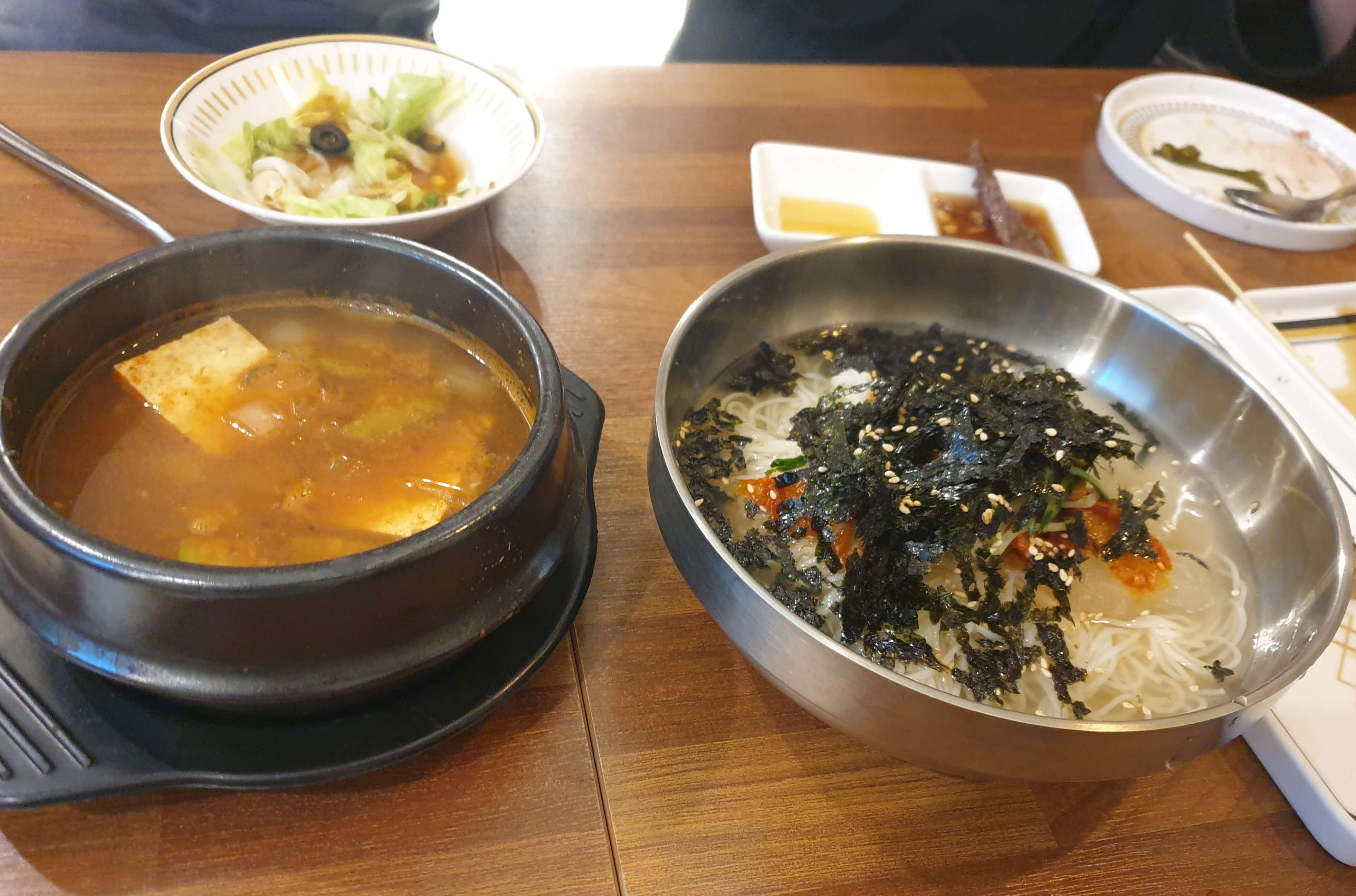 당면 된장은 맛을 안 봐서 모르겠고 김치말이 국수는 시원하고 깔끔하게 후식으로 먹고 나오기 좋았다.