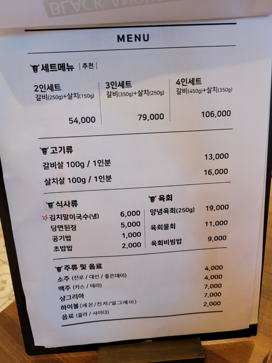 메뉴판에는 오늘 먹을 꼬기인 미국의 한우라 불리는 블랙앵거스 (흑우)에 대해 설명해 놓으셨다.