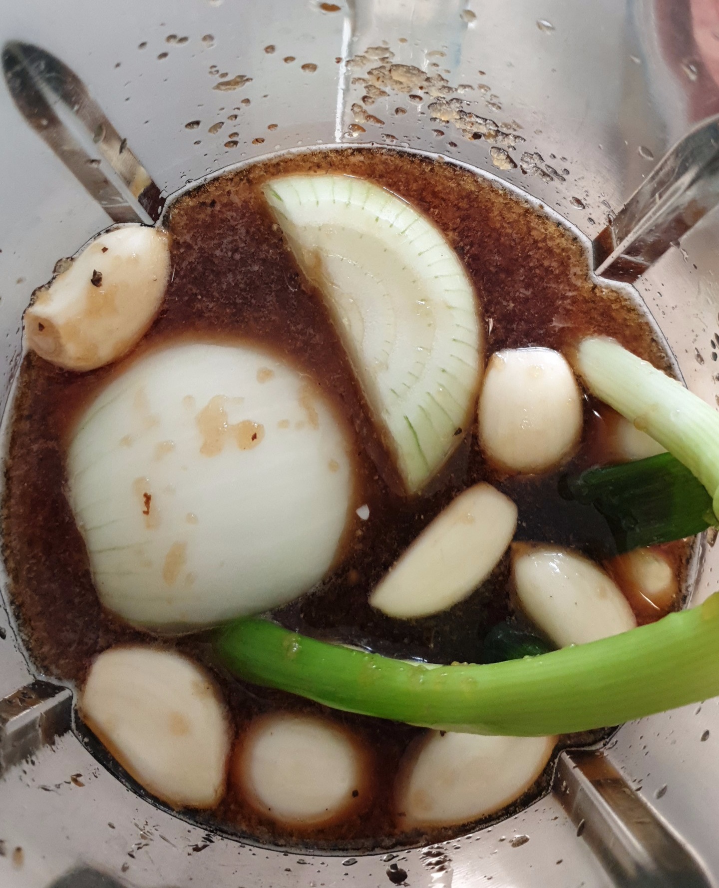 굴소스 1큰술, 마늘 2큰술 or 통마늘 8개 정도, 양파 한 개