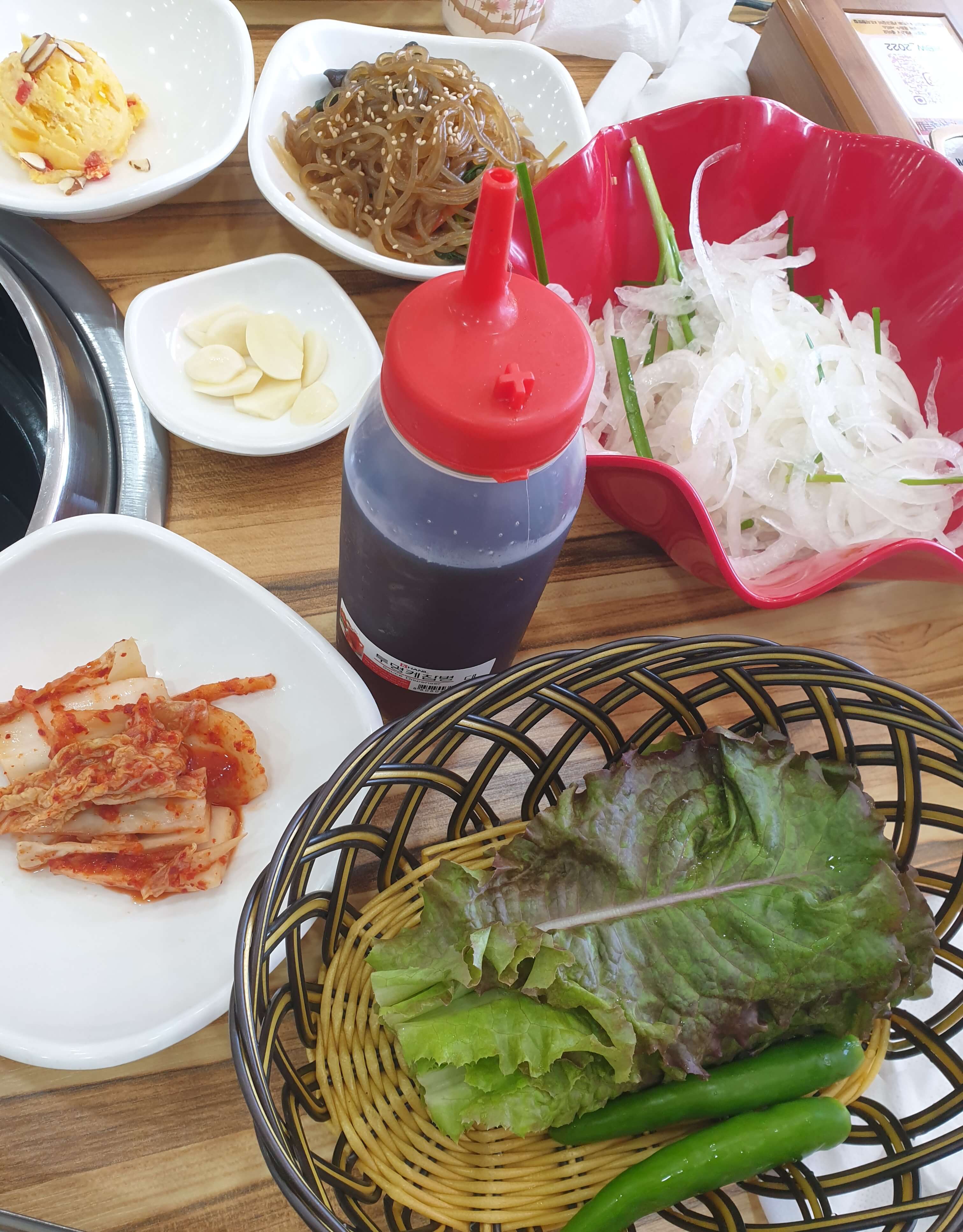 야채와 밑반찬들이 먼저 나온다.