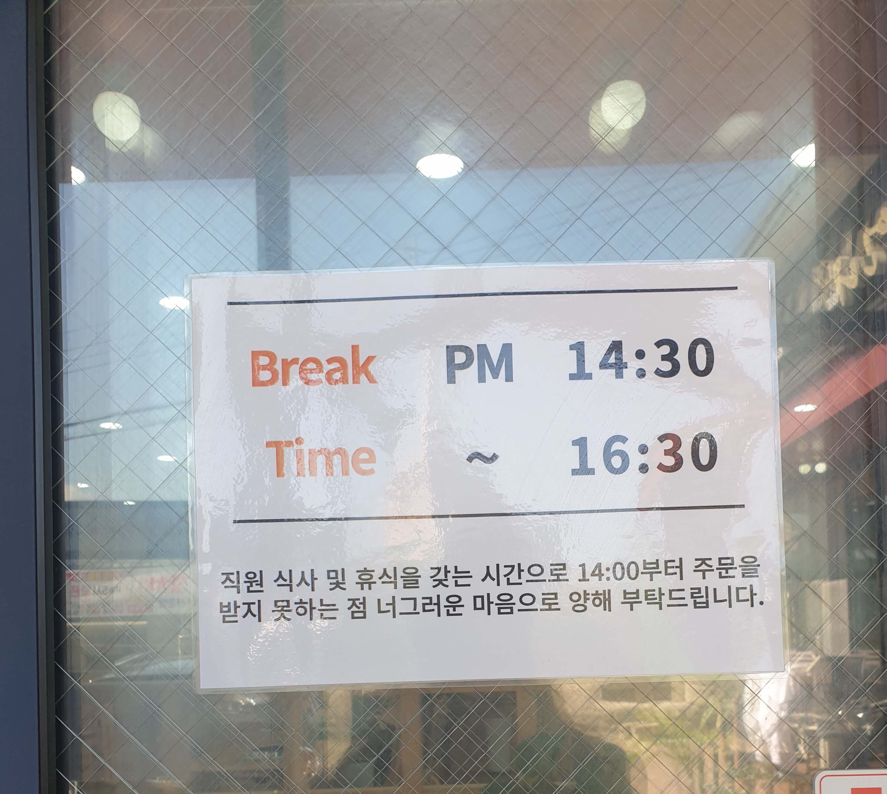 브레이크 타임 14:30~ 16:30