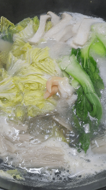 바지락 넣고 끓인 육수에 야채도 적당량 넣어주세요.