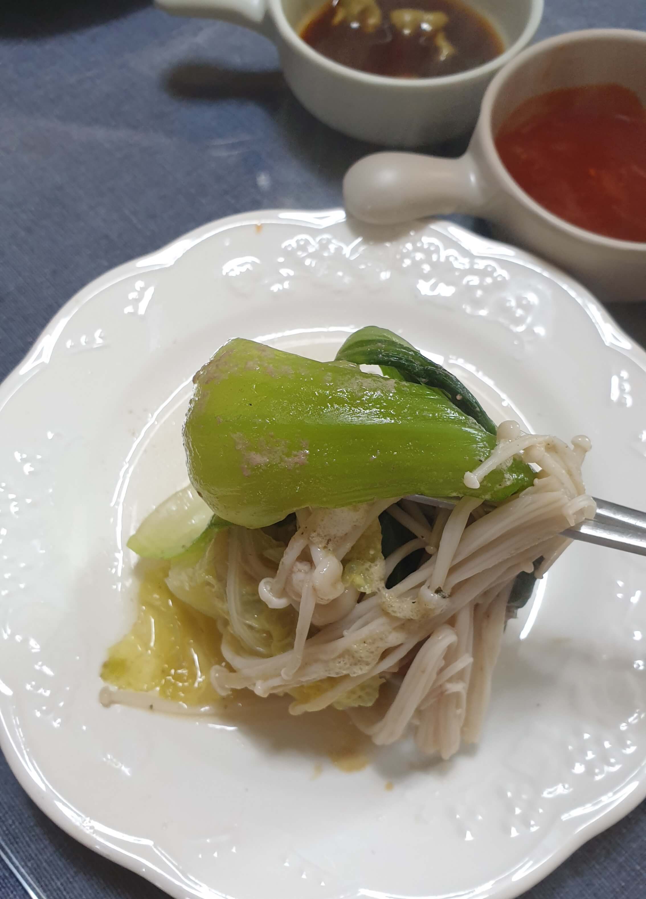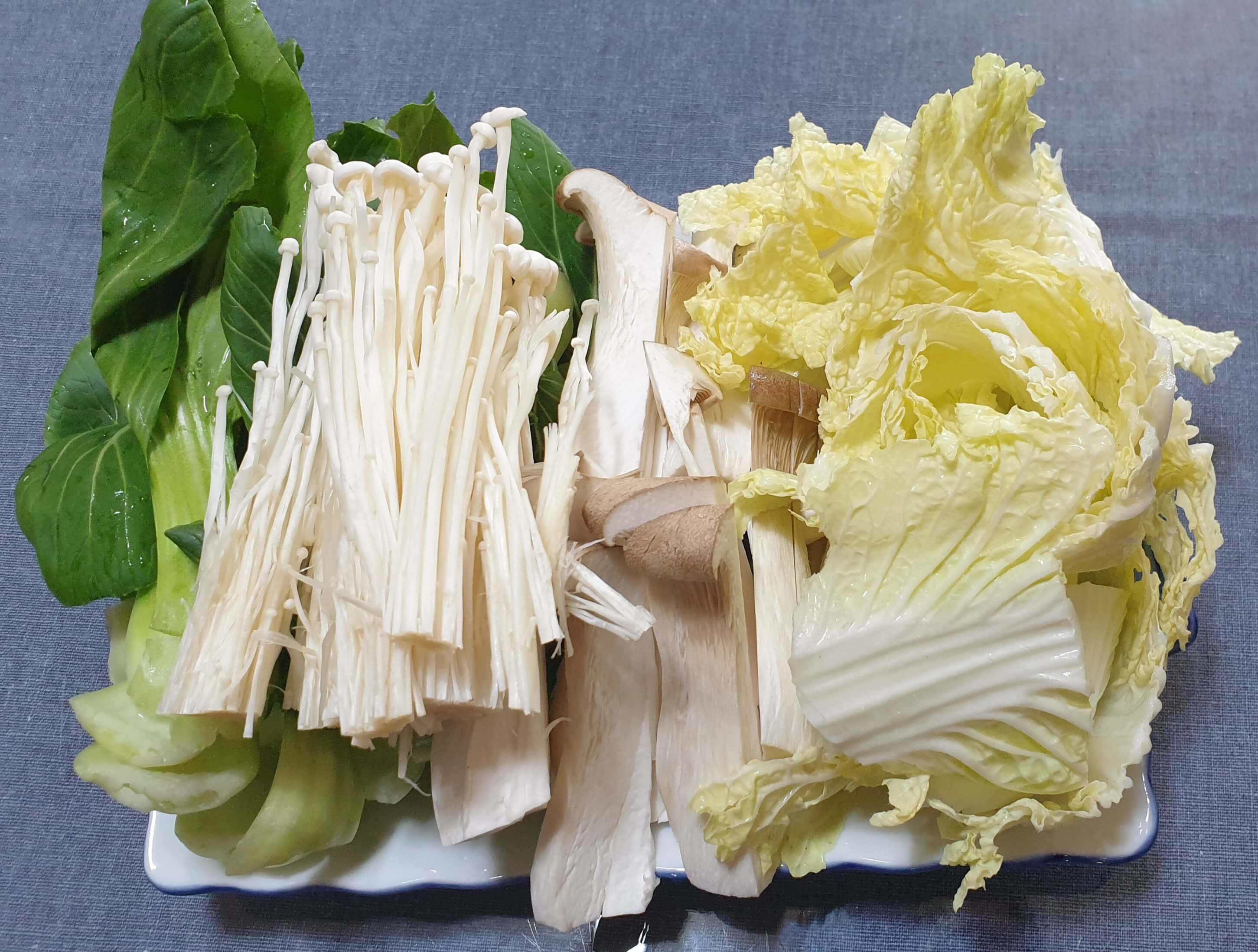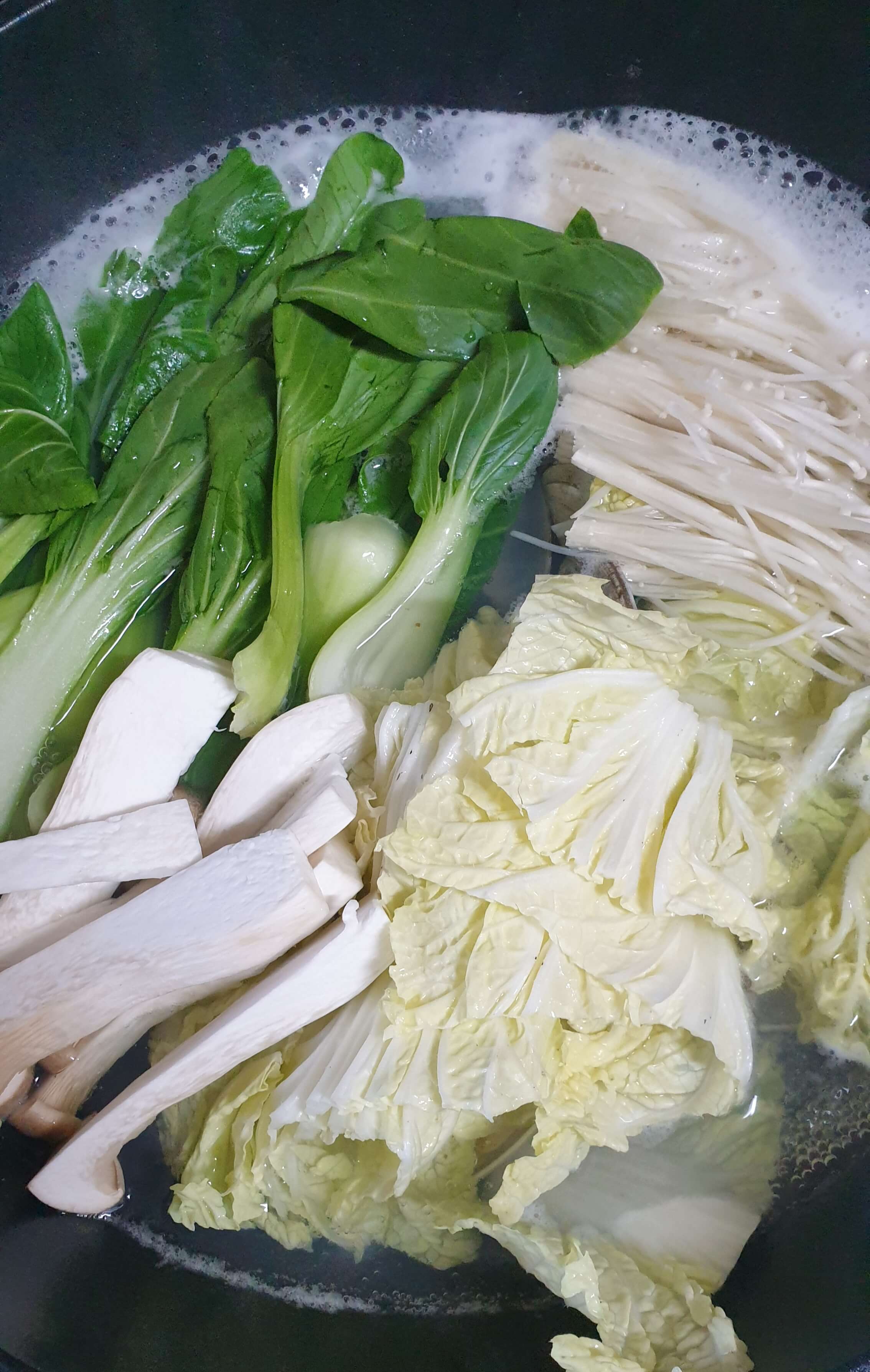 청경채, 팽이버섯, 새송이 버섯, 알배추로 준비했어요.