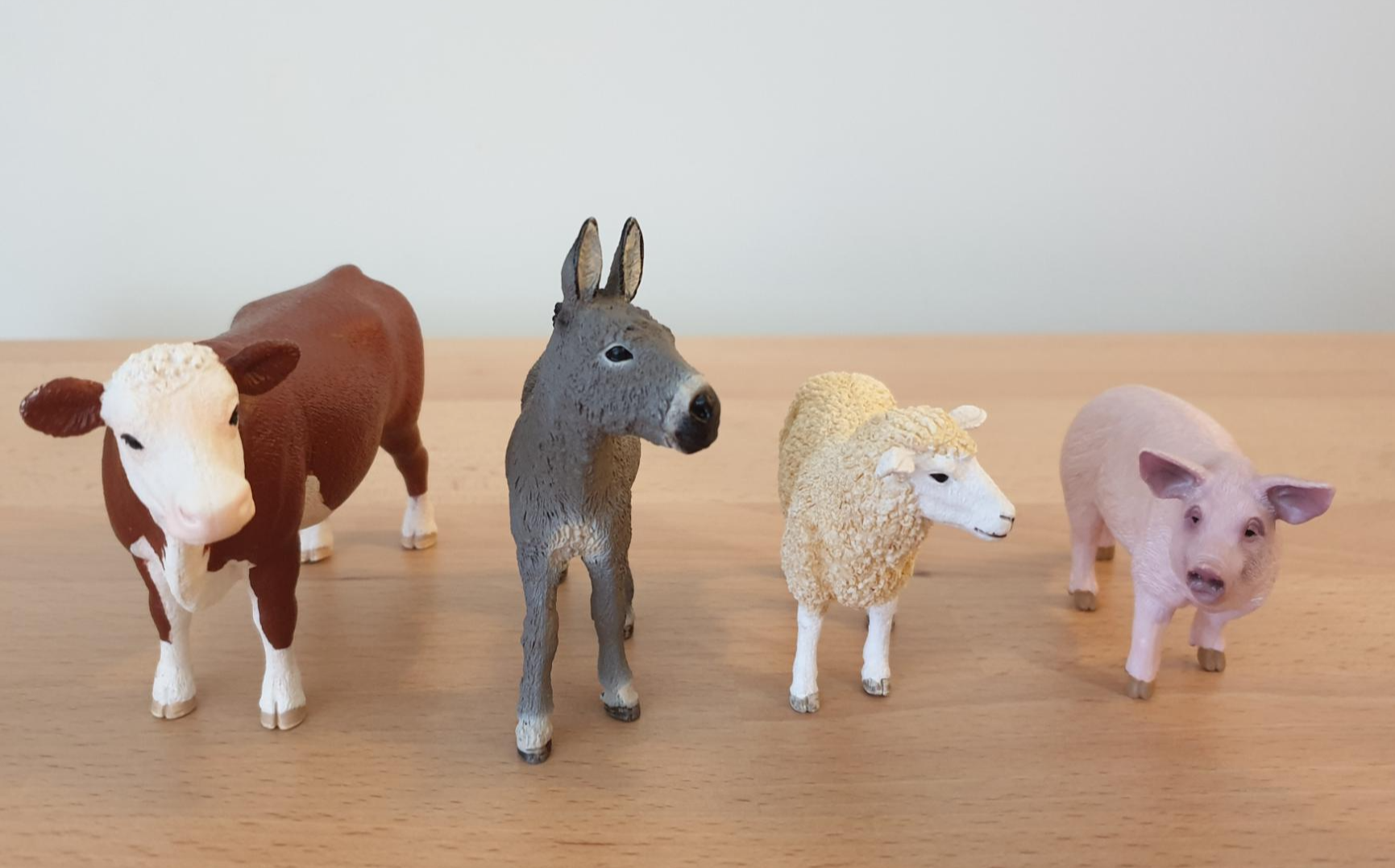 이것들은 얼마 전 아기가 선물 받은 동물 피규어에요