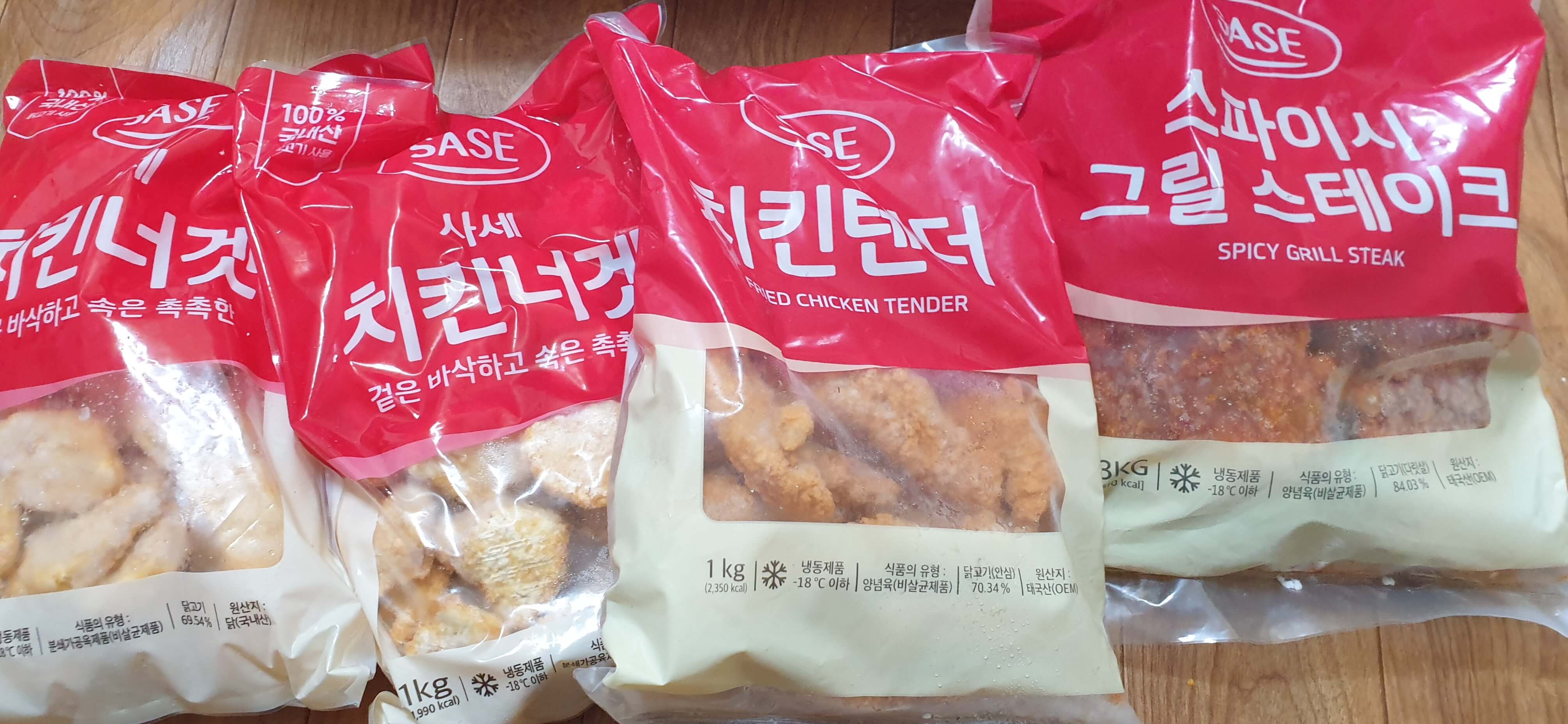 요즘 부쩍 치킨 먹고 싶다고 자주 말하는 아이도 가끔 구워줄 겸 해서 사세 브랜드의 치킨너겟, 치킨텐더, 스파이시 그릴 스테이크를 주문해 보았다.