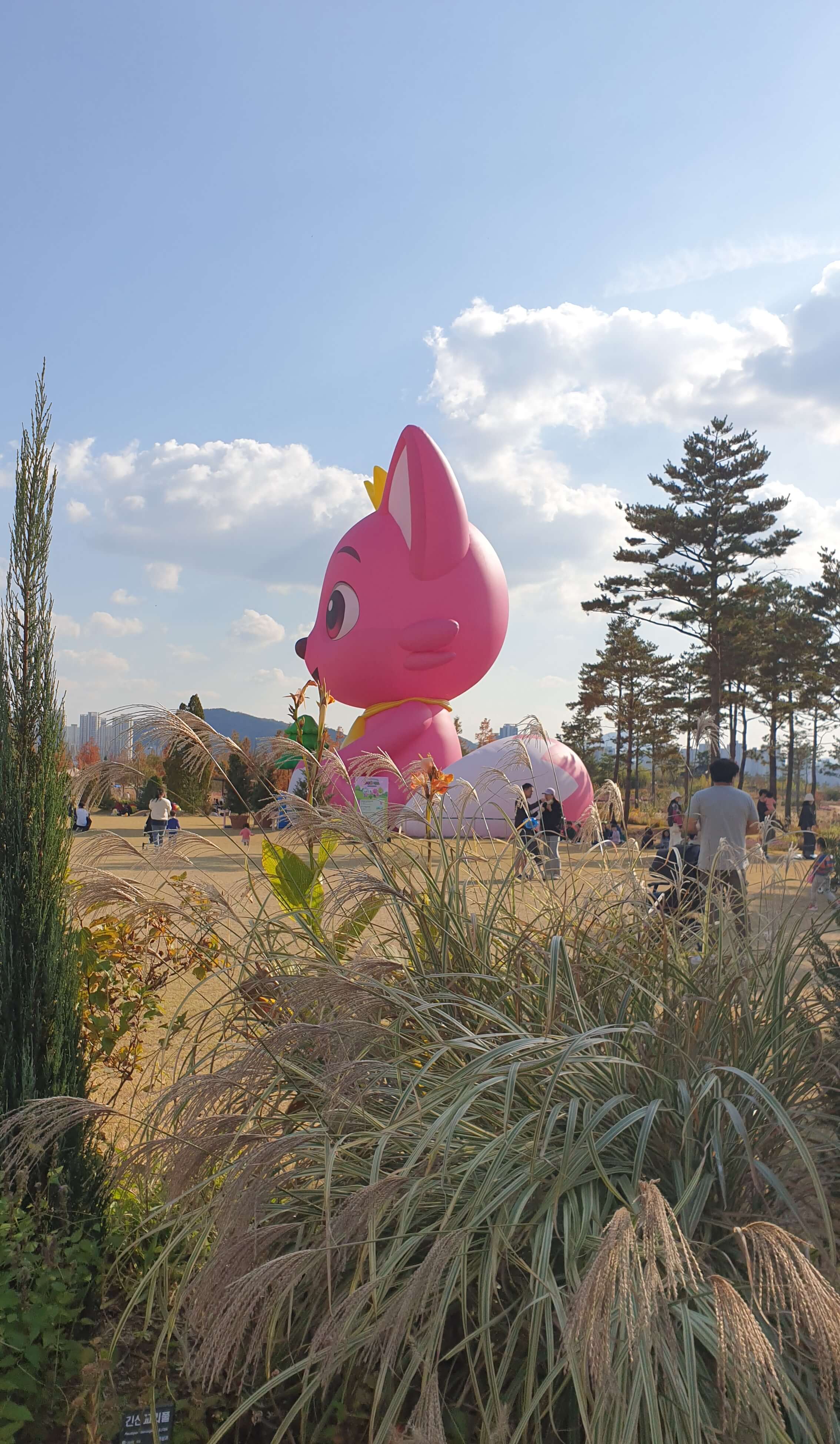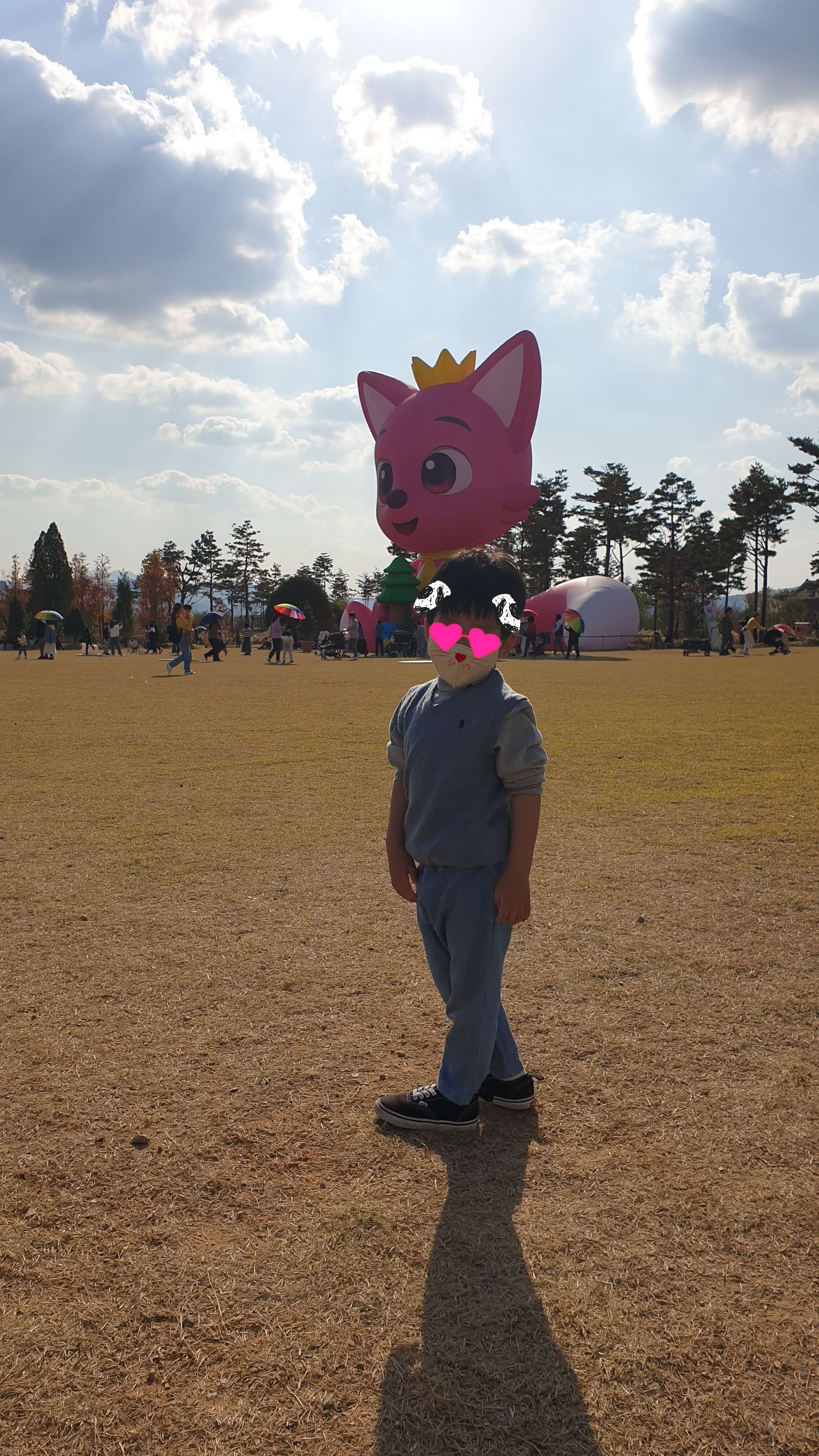 꿈의 정원 행사로 대형 핑크퐁이 있었는데 아이는 시큰둥했다.