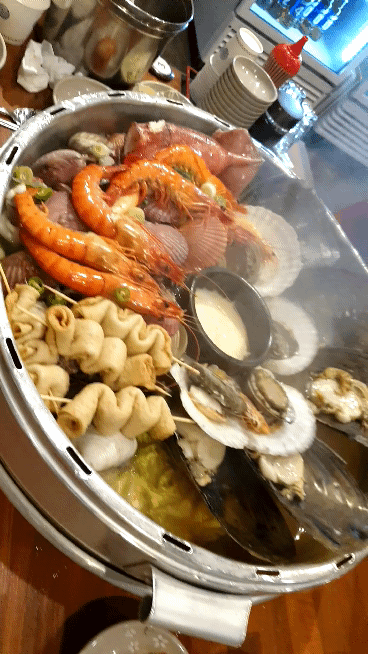 조개전골 이외에도 돈까스, 굴튀김, 새우튀김 등을 판매하고 있고, 소고기 샤브도 시켜서 함께 먹을 수 있다.