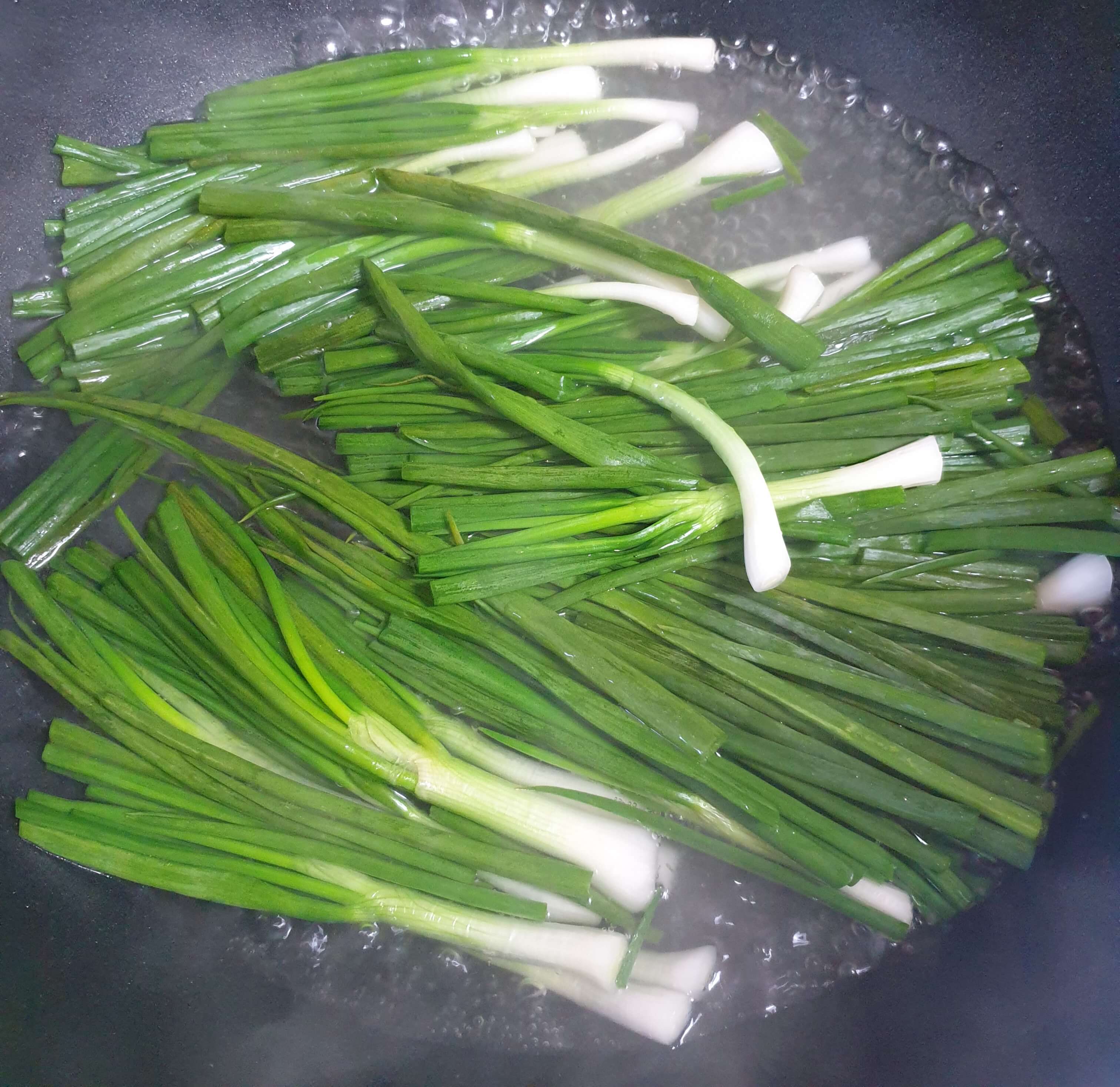 쪽파 데칠 물을 팔팔 끓여주세요.