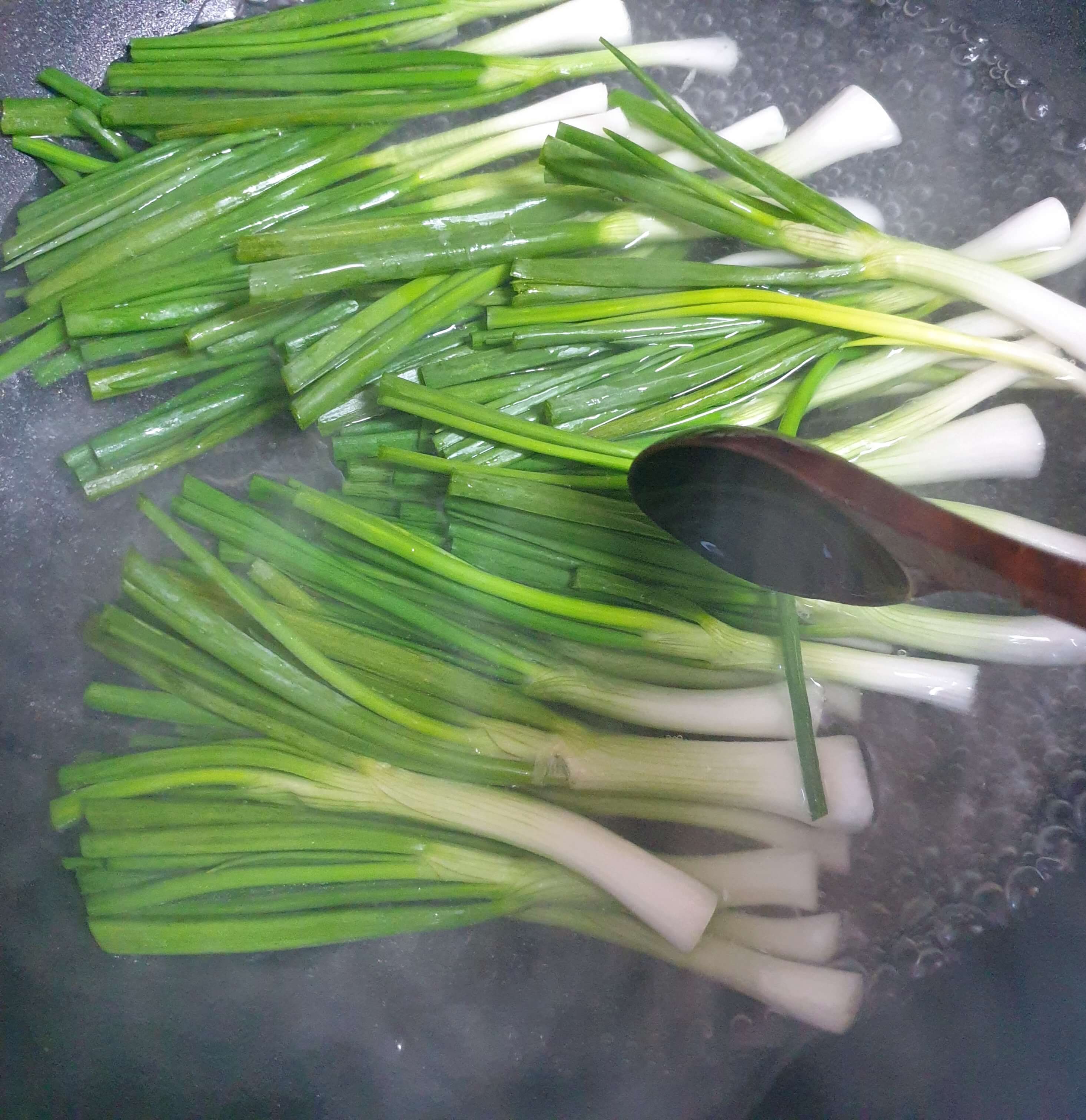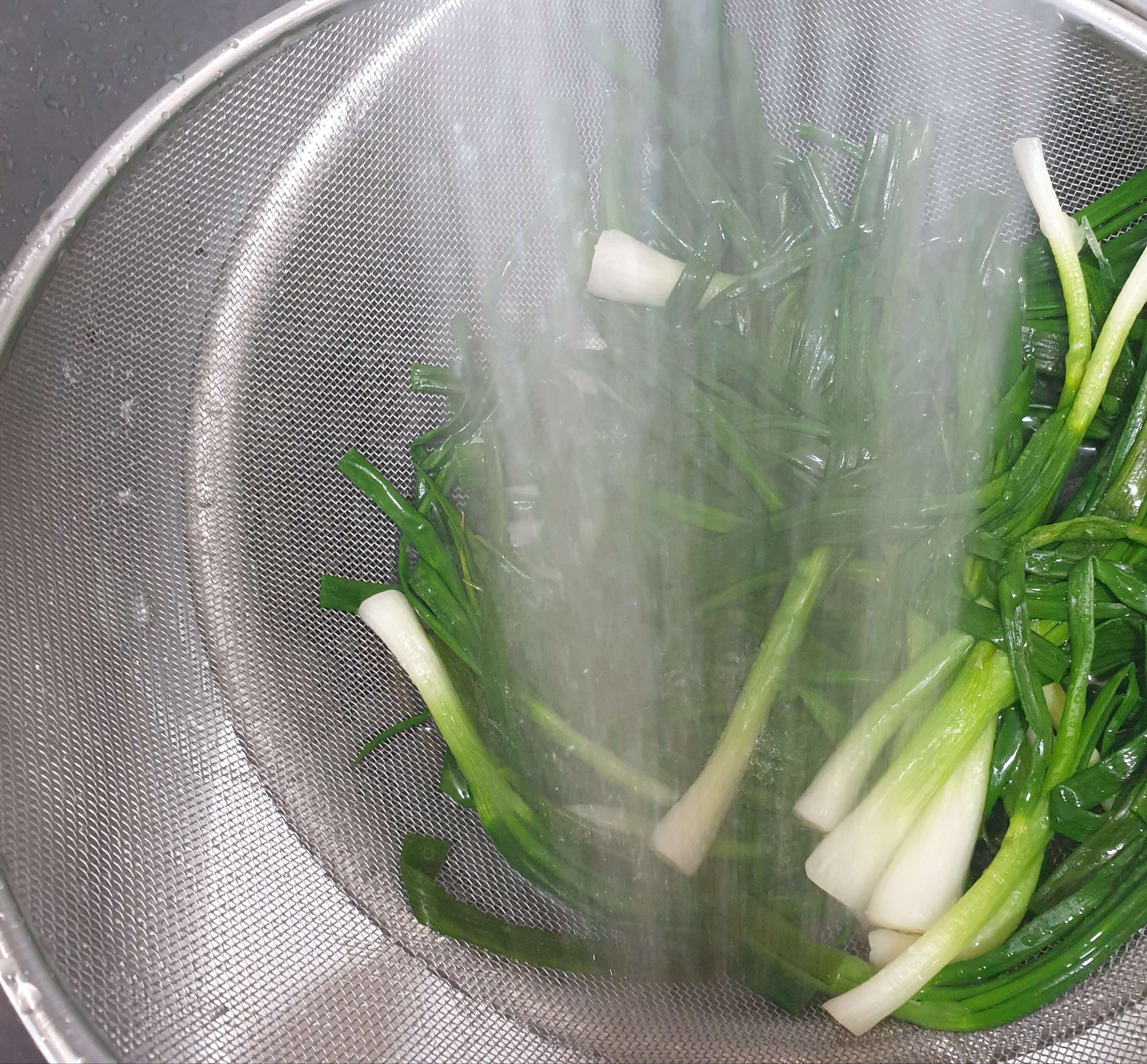 쪽파는 뿌리 쪽을 먼저 데쳐주세요.