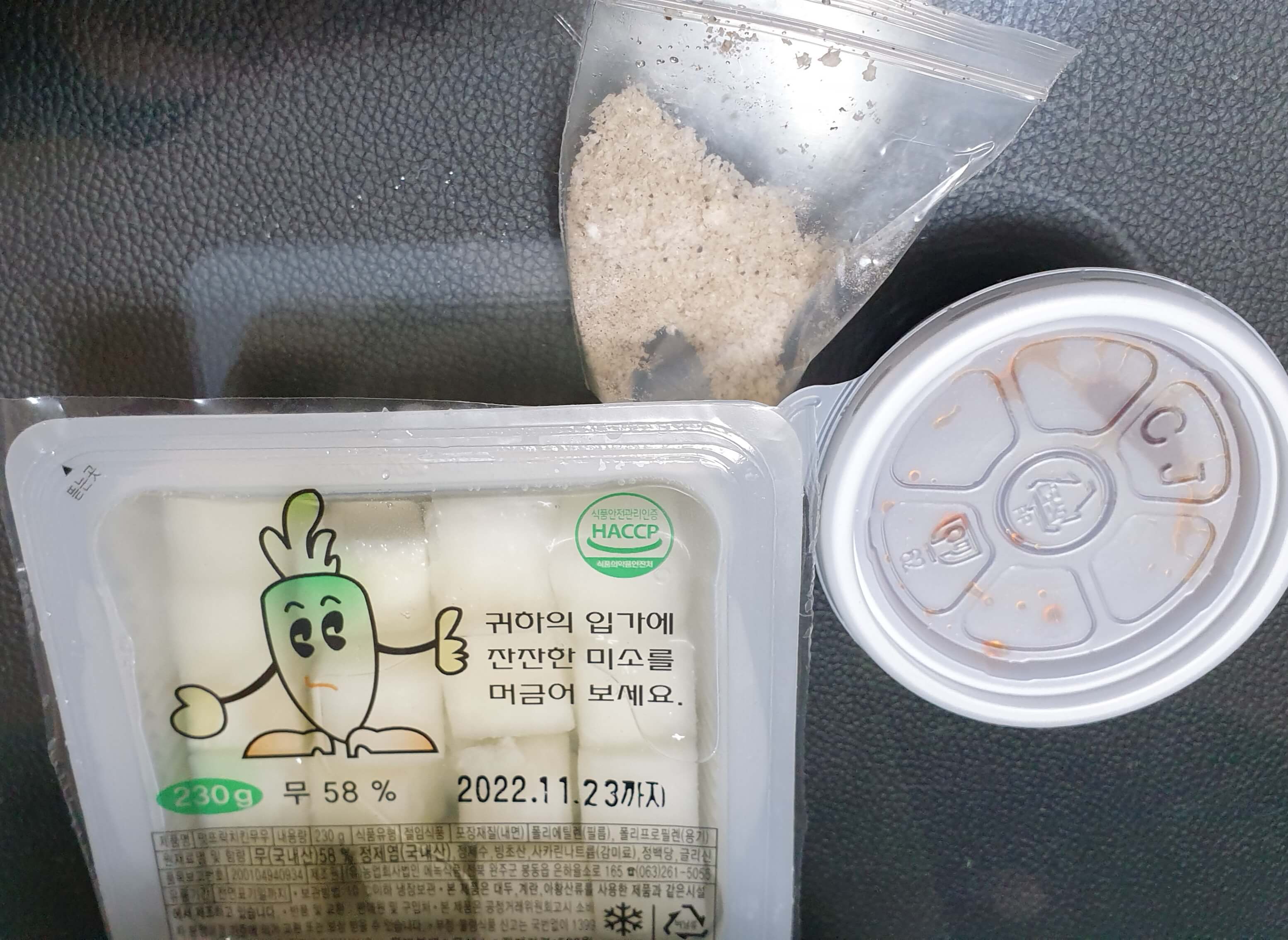 치킨을 시키면 무, 소금, 양념, 펩시가 딸려온다.
