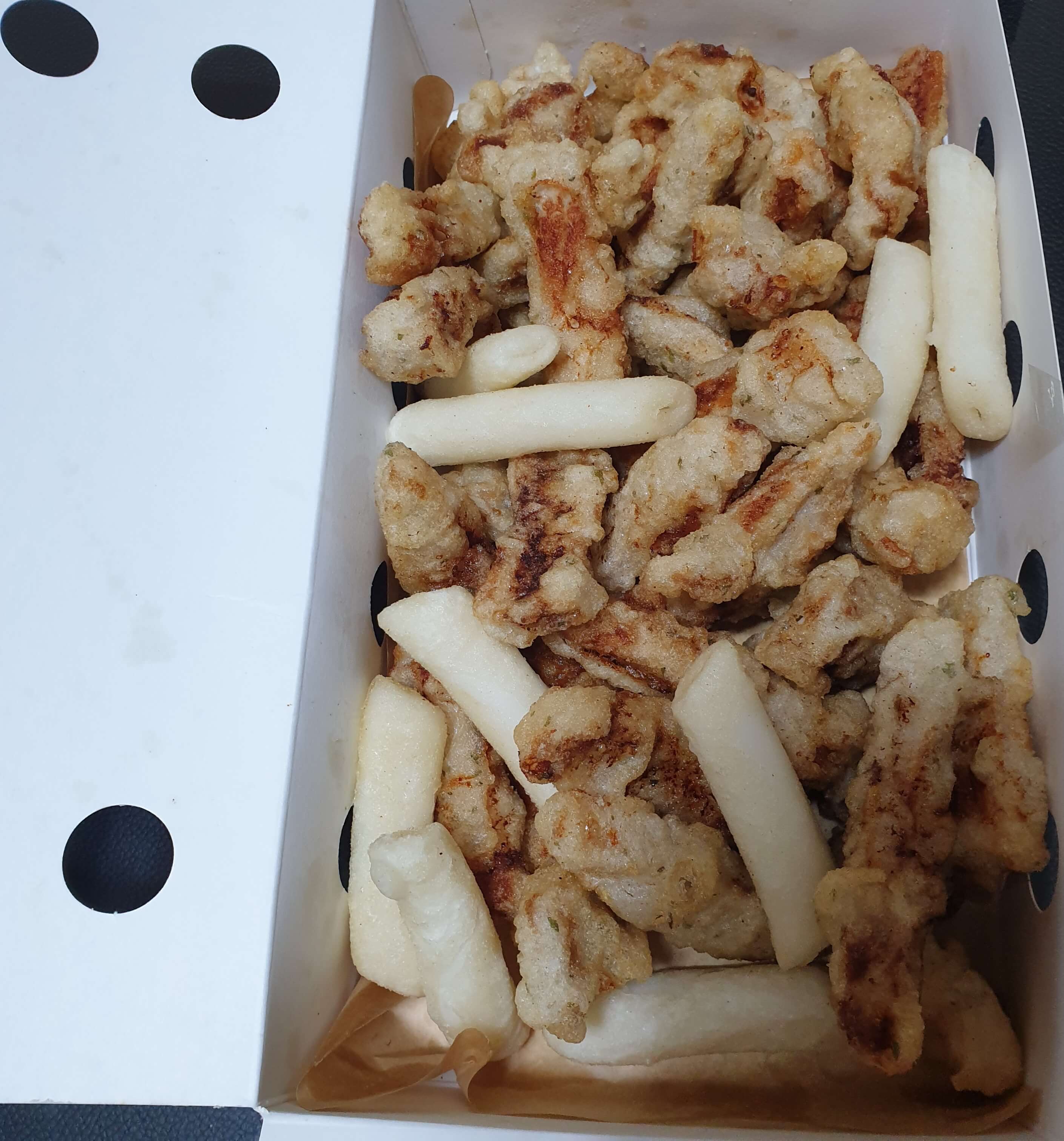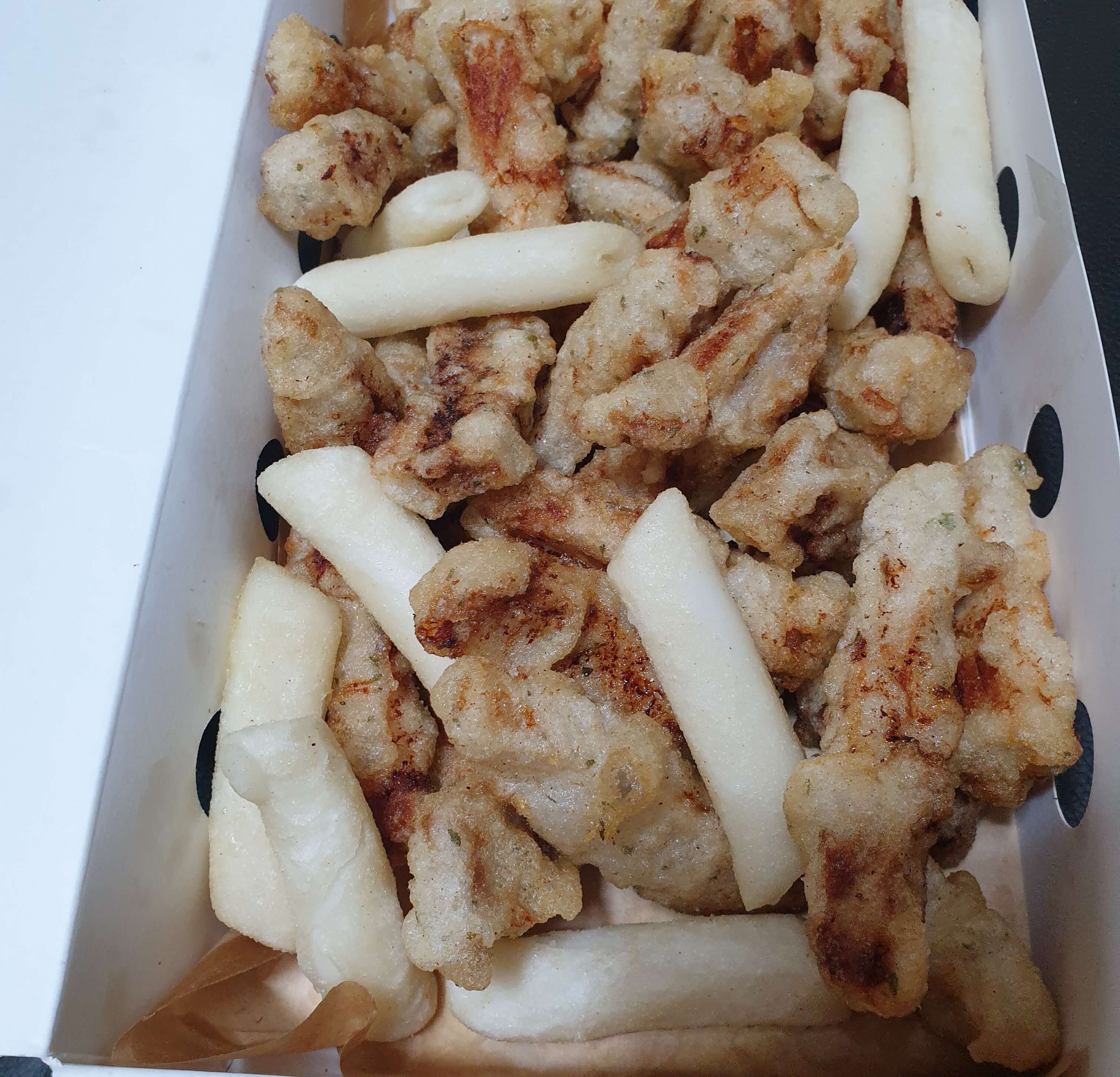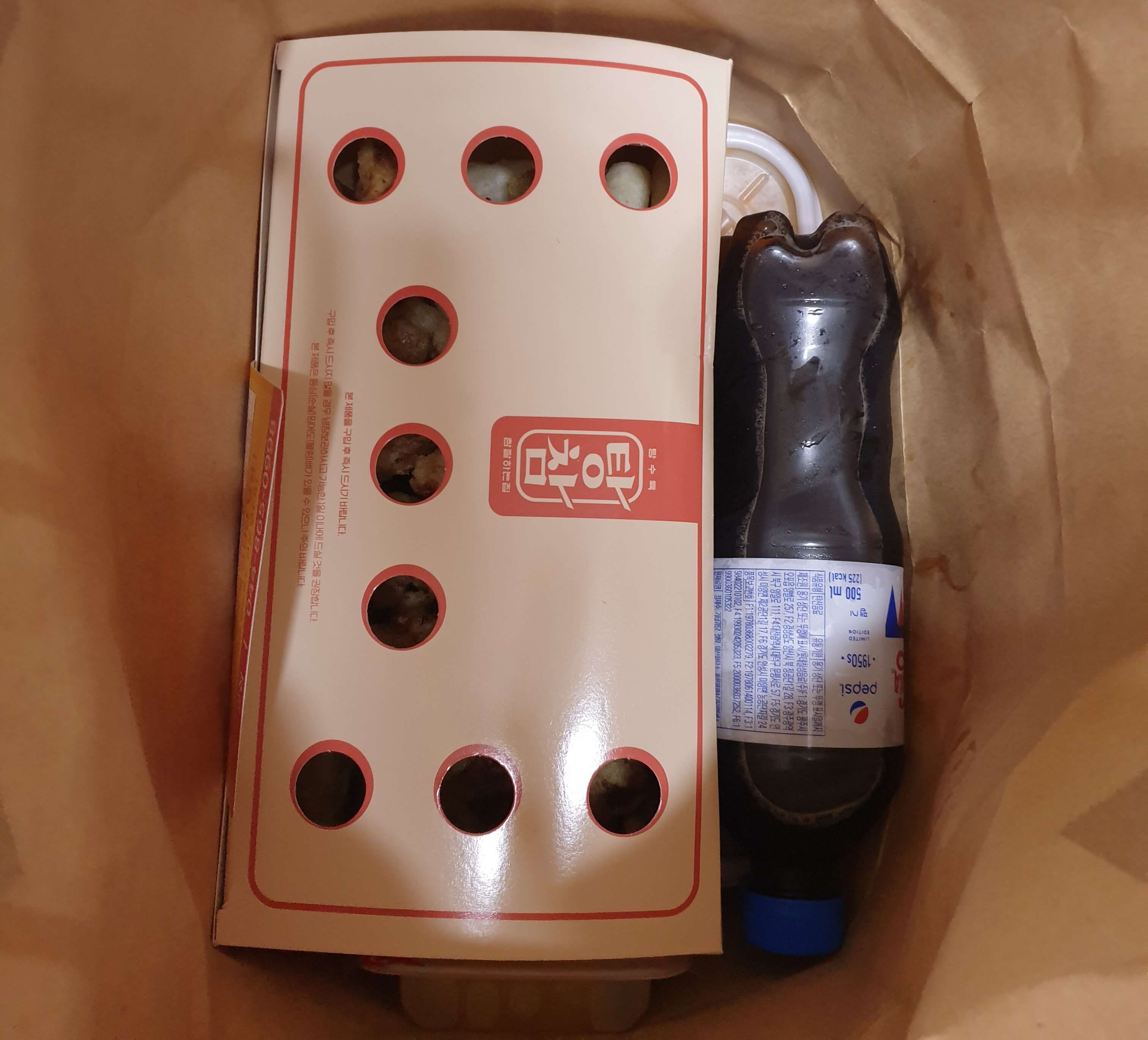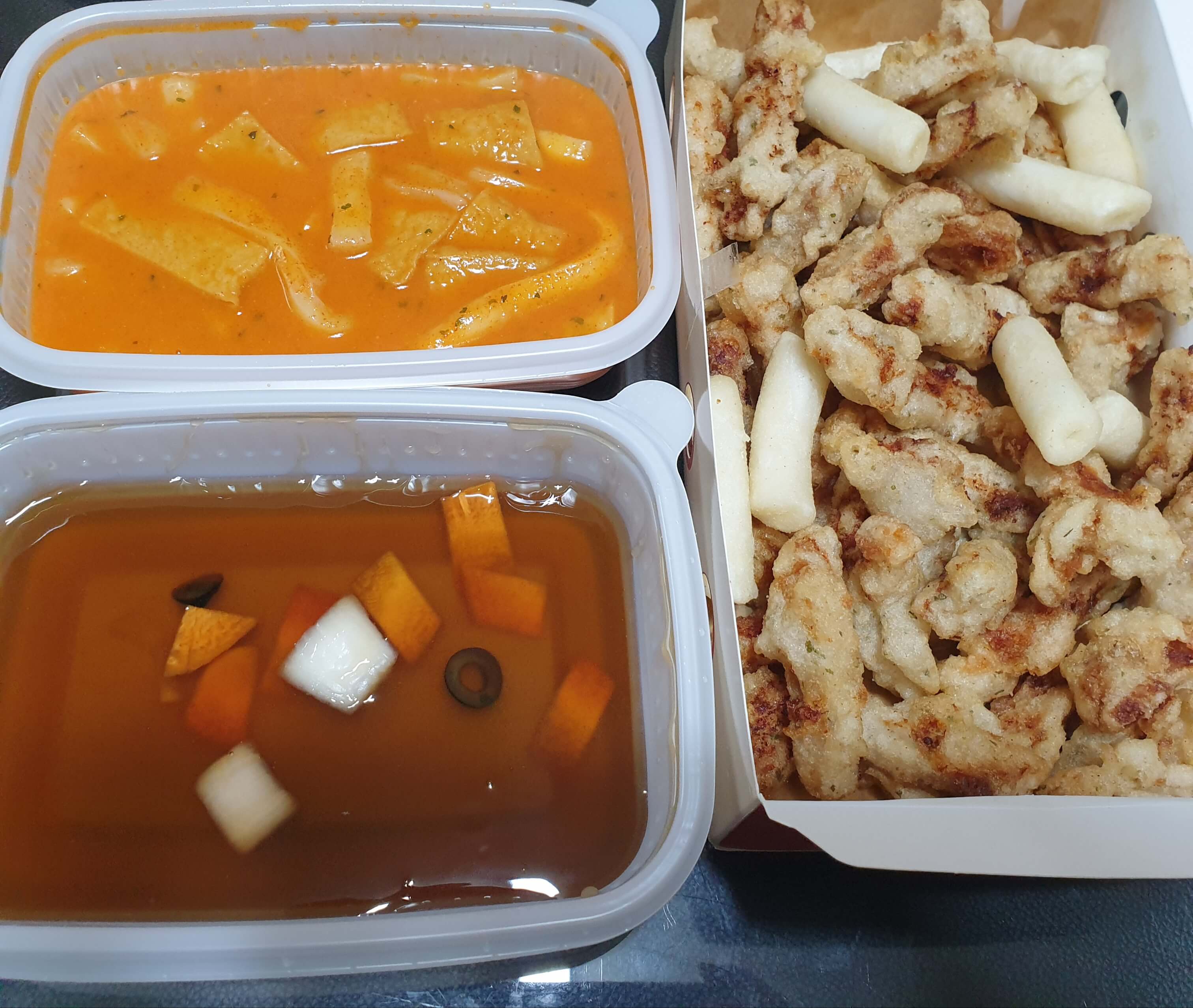 찹쌀 탕수육+로제 떡볶이+콜라+단무지+소스가 도착했다.
