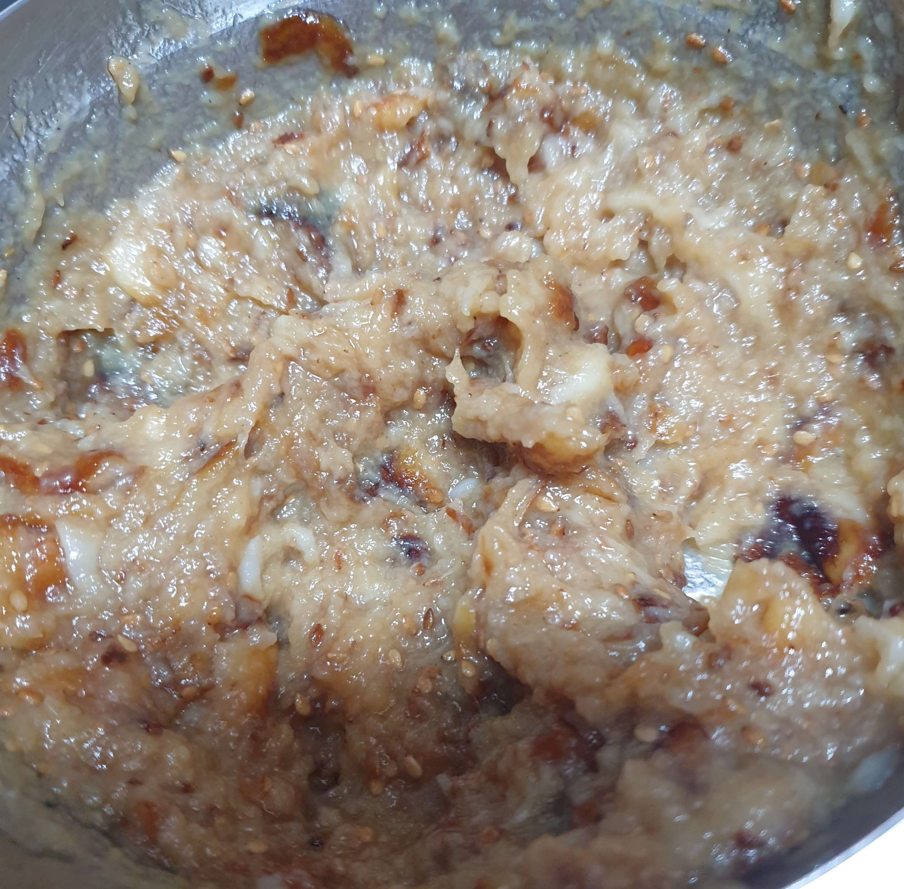 깨 한 움큼을 으깨서 넣어주세요.