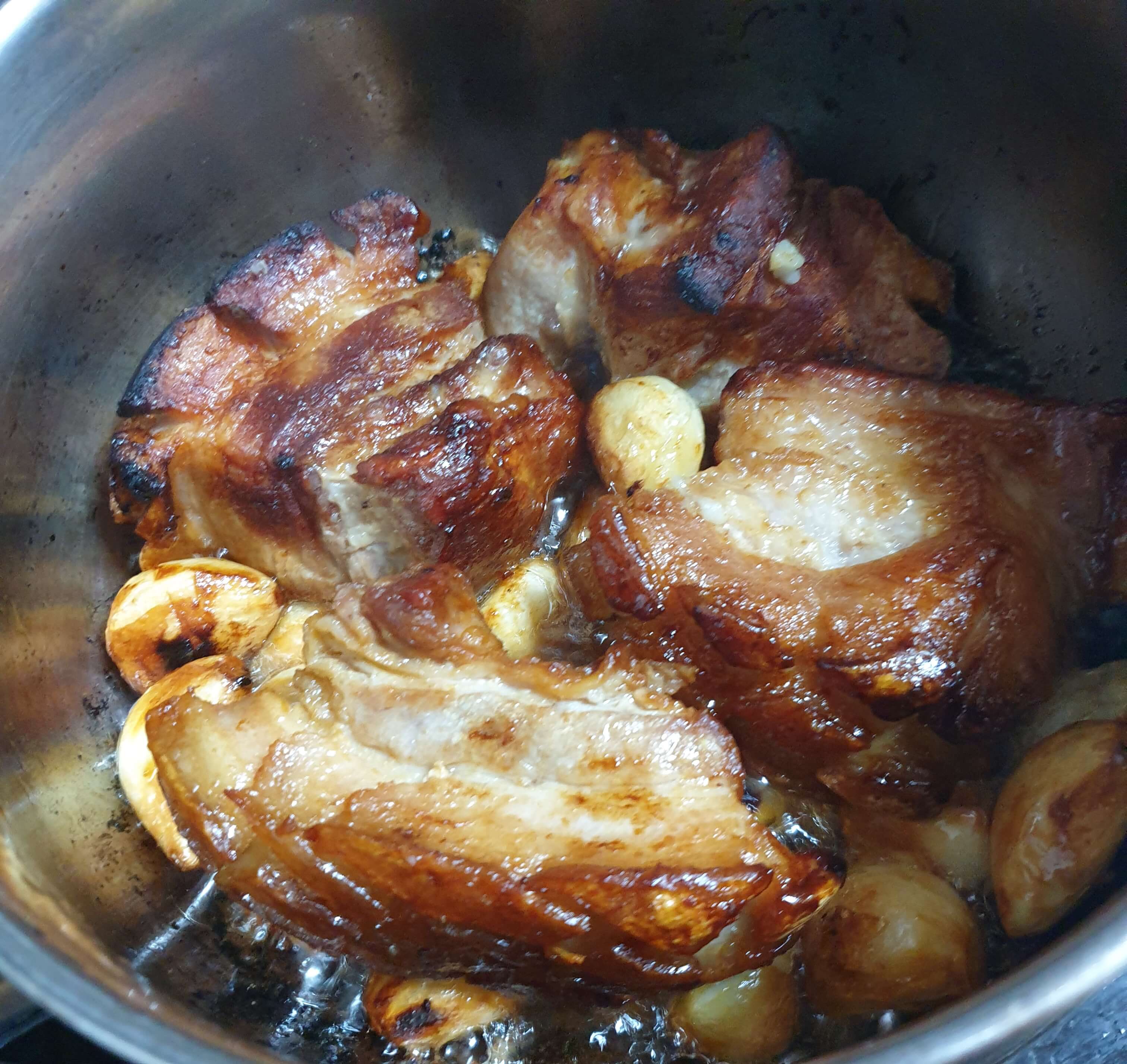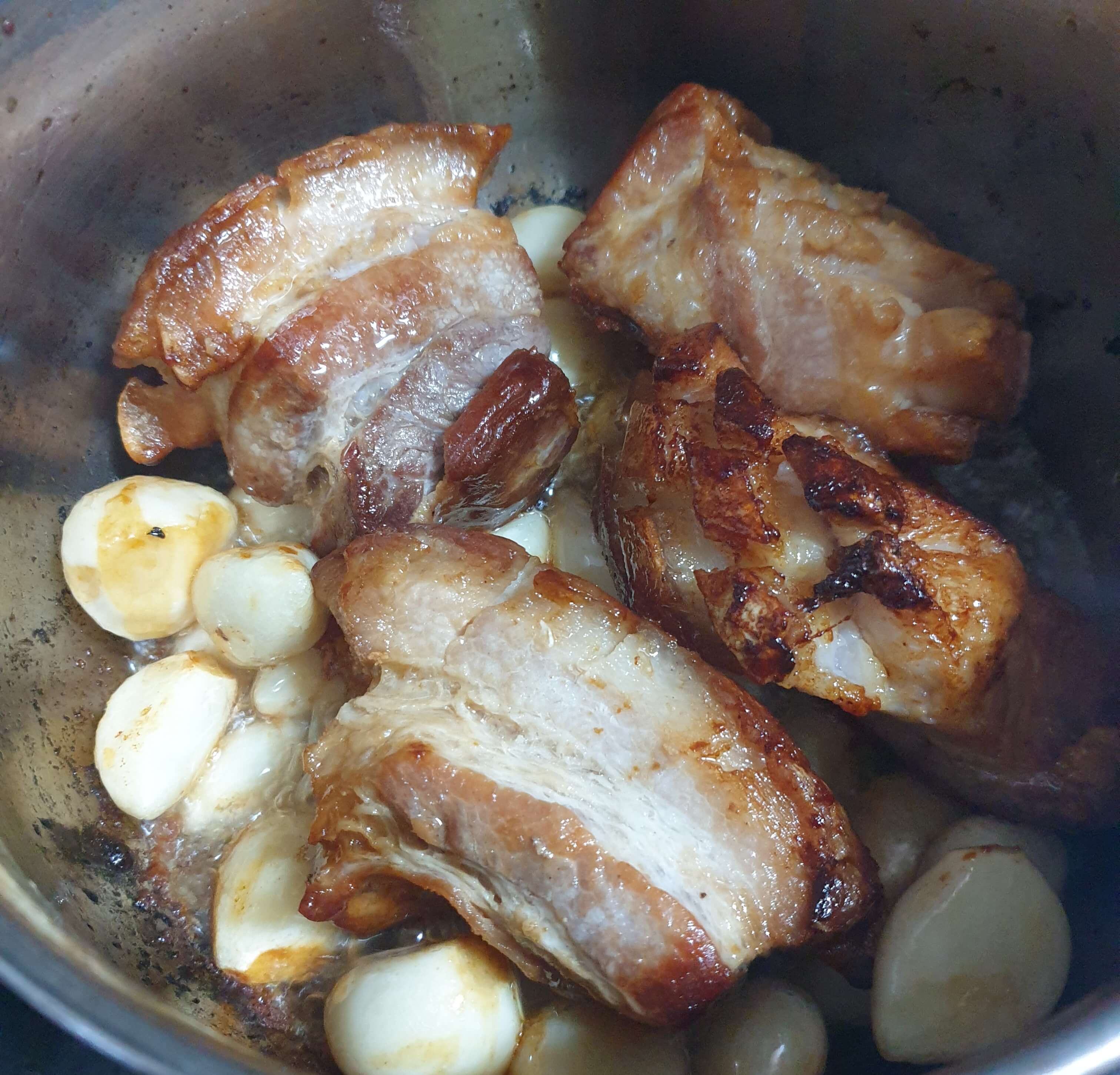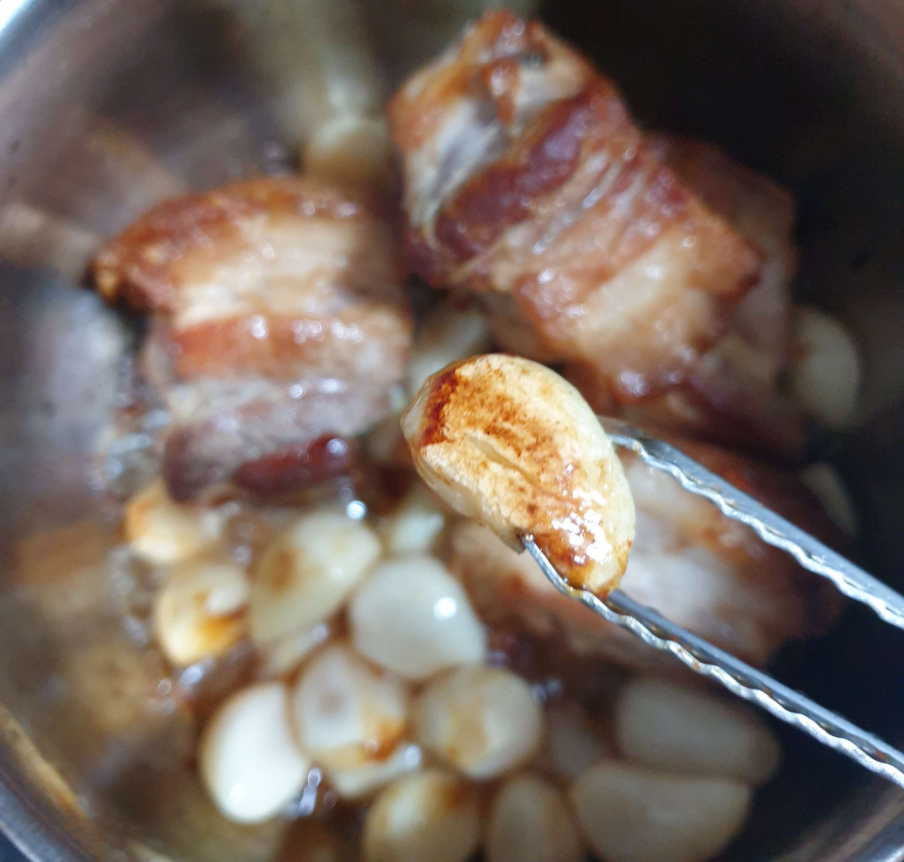 뚜껑을 닫고 고기와 마늘을 10분간 익혀줍니다.