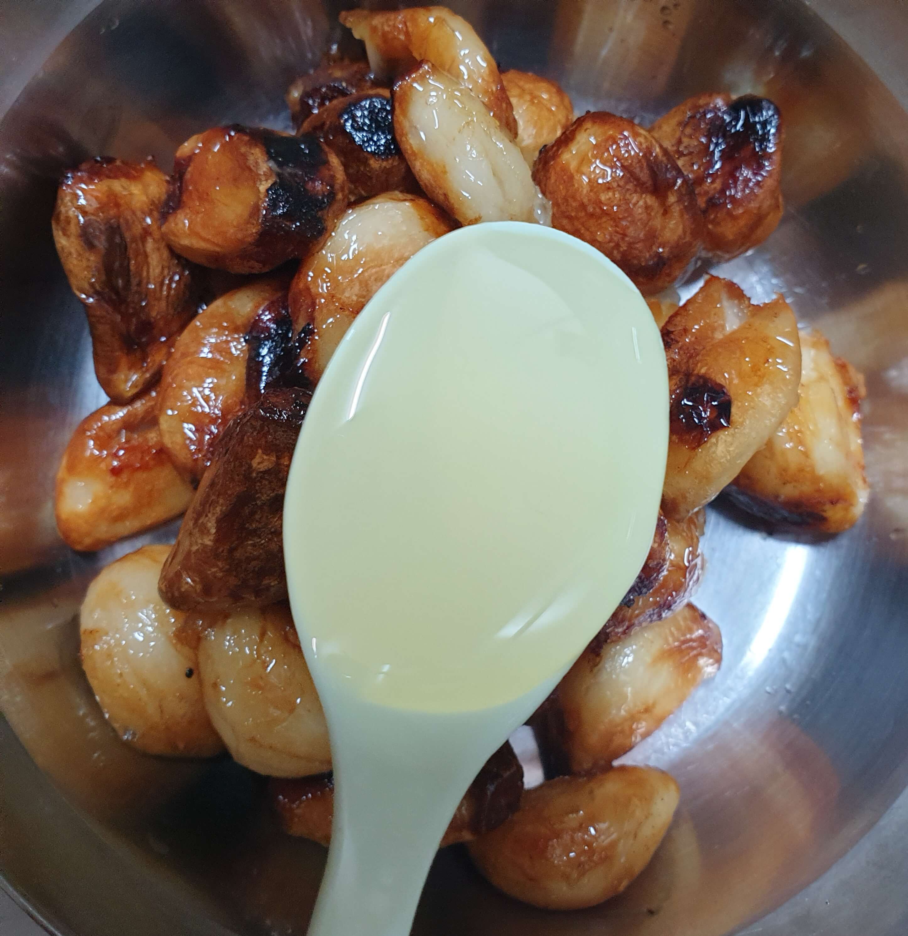 마늘이 갈색으로 익었으면