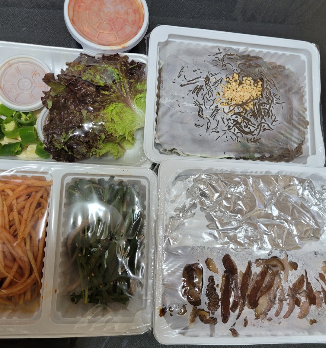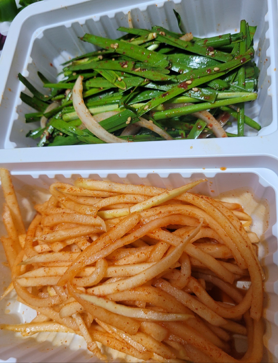 부추무침, 무생채, 야채들이 함께 배달됐다.