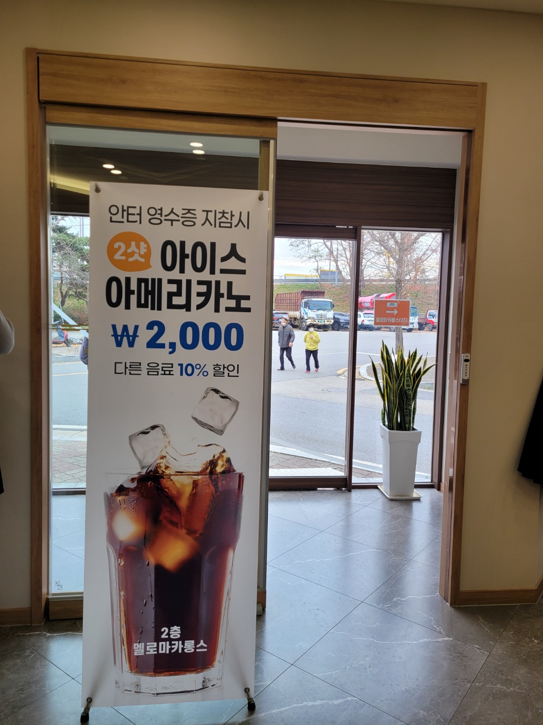 음식을 다 먹고, 안터영수증을 지참하면 2층 멜로마카롱스에서 아이스 아메리카노를 2,000원에 먹을 수 있다.