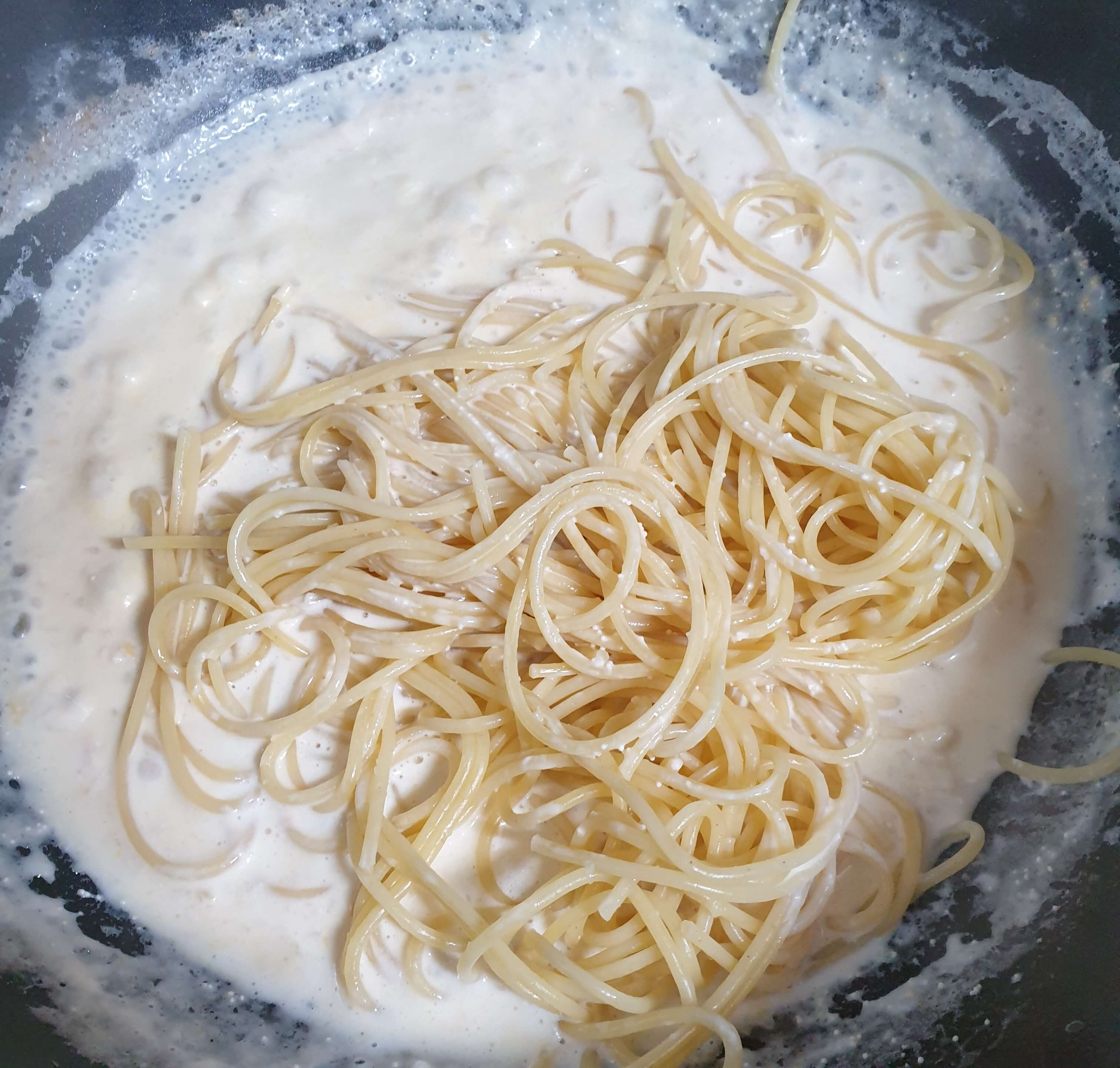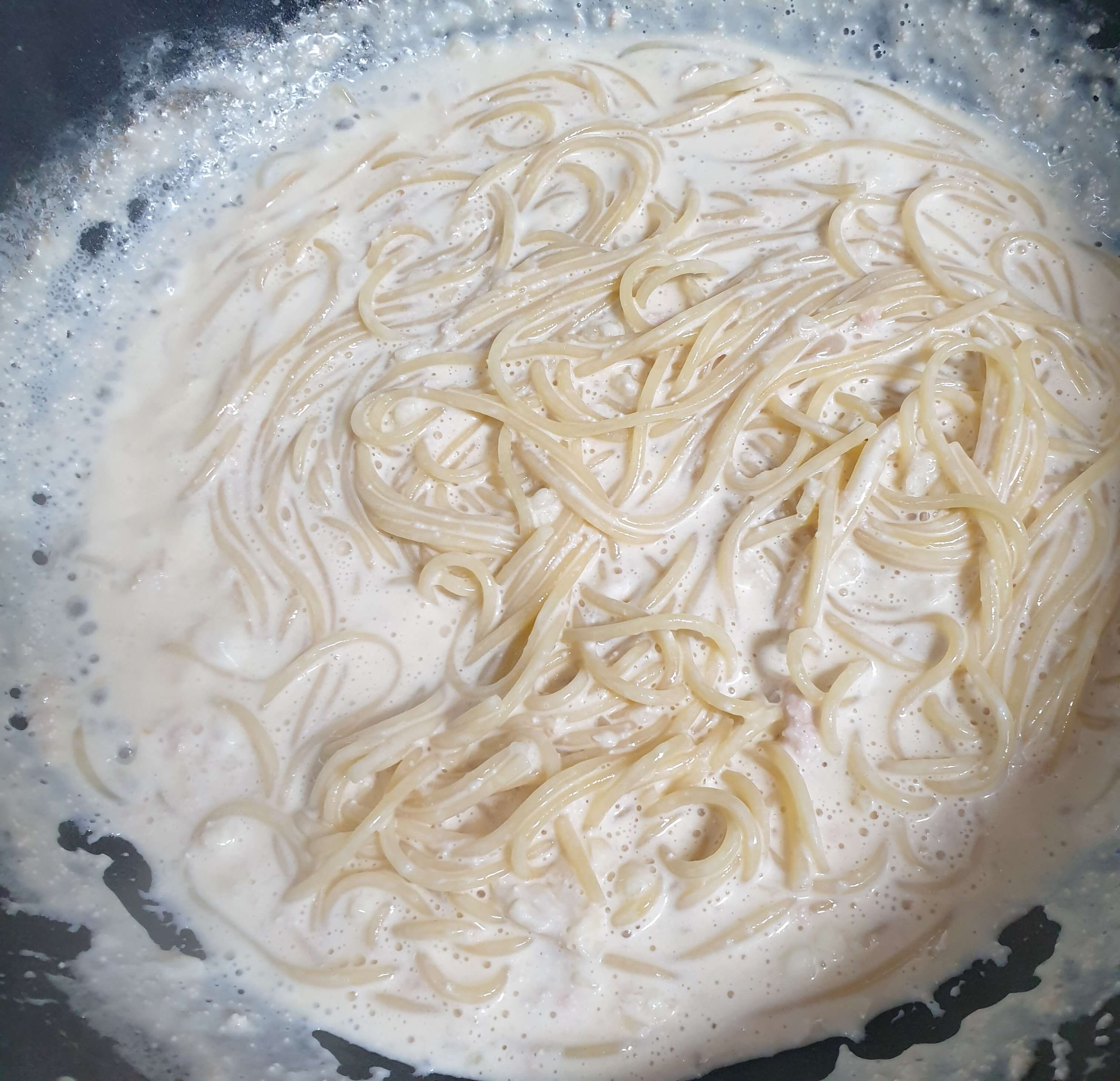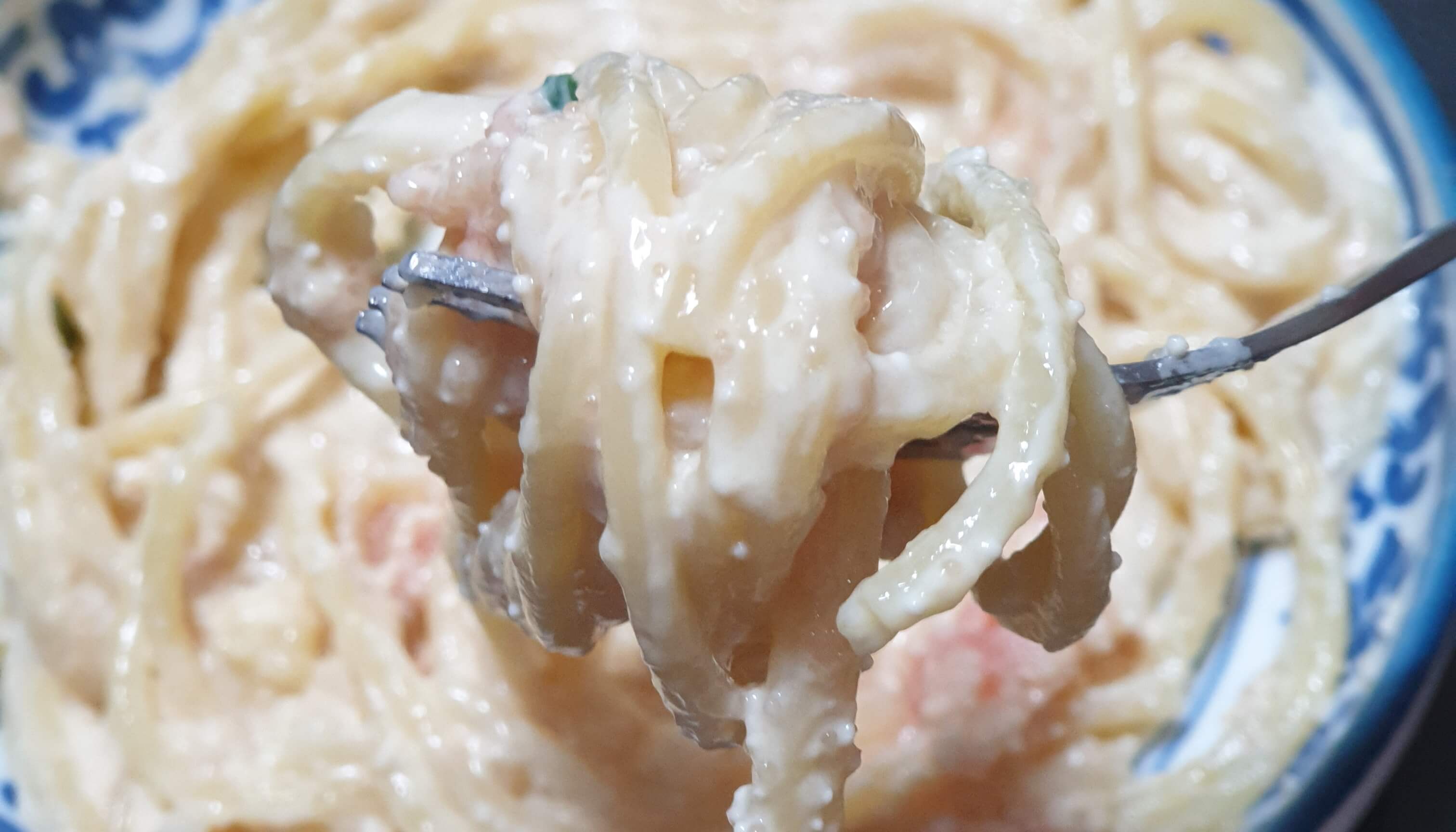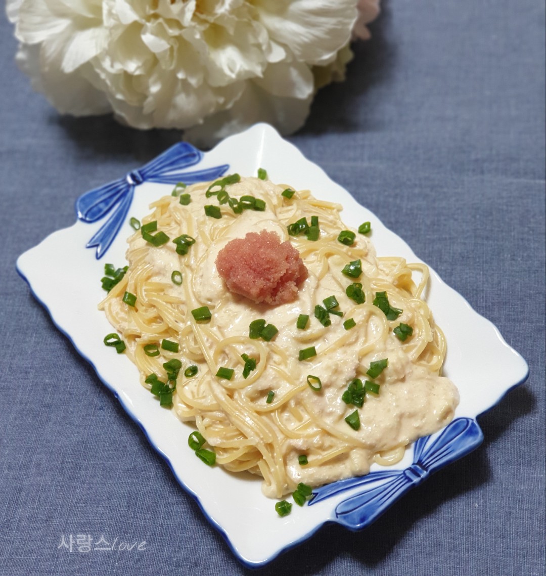 맛있는 명란 크림 파스타가 완성됐습니다.