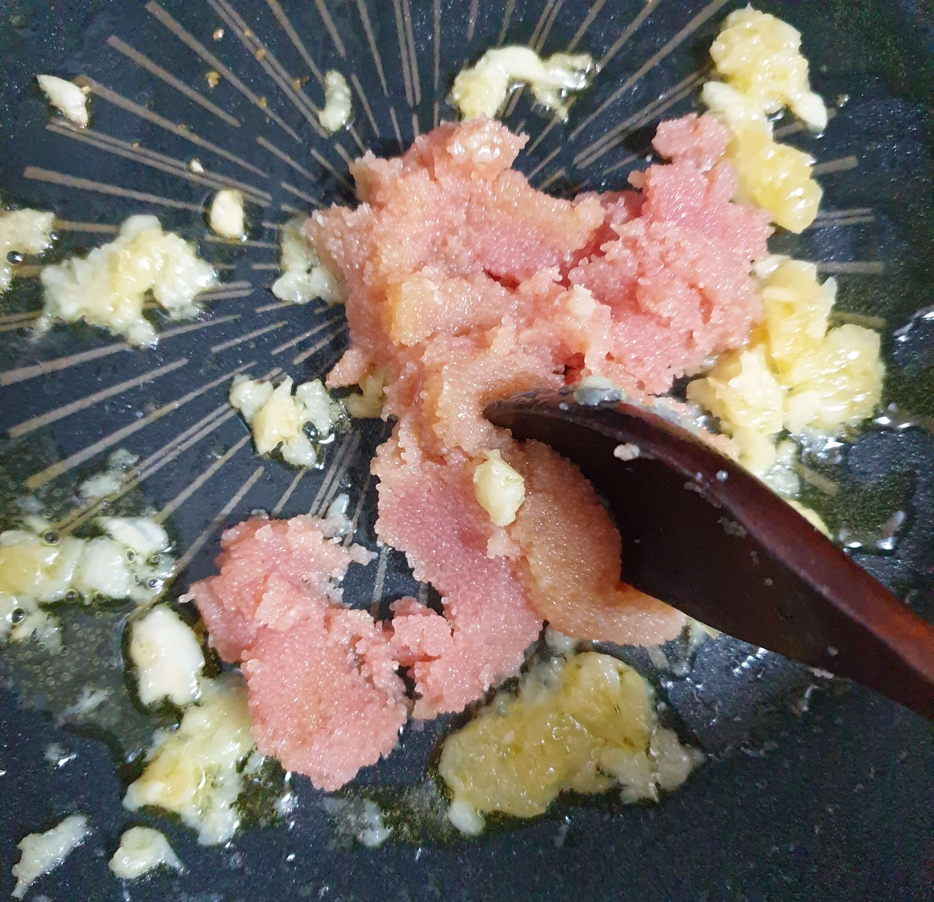 명란젓도 넣어 살짝 볶아 줍니다.