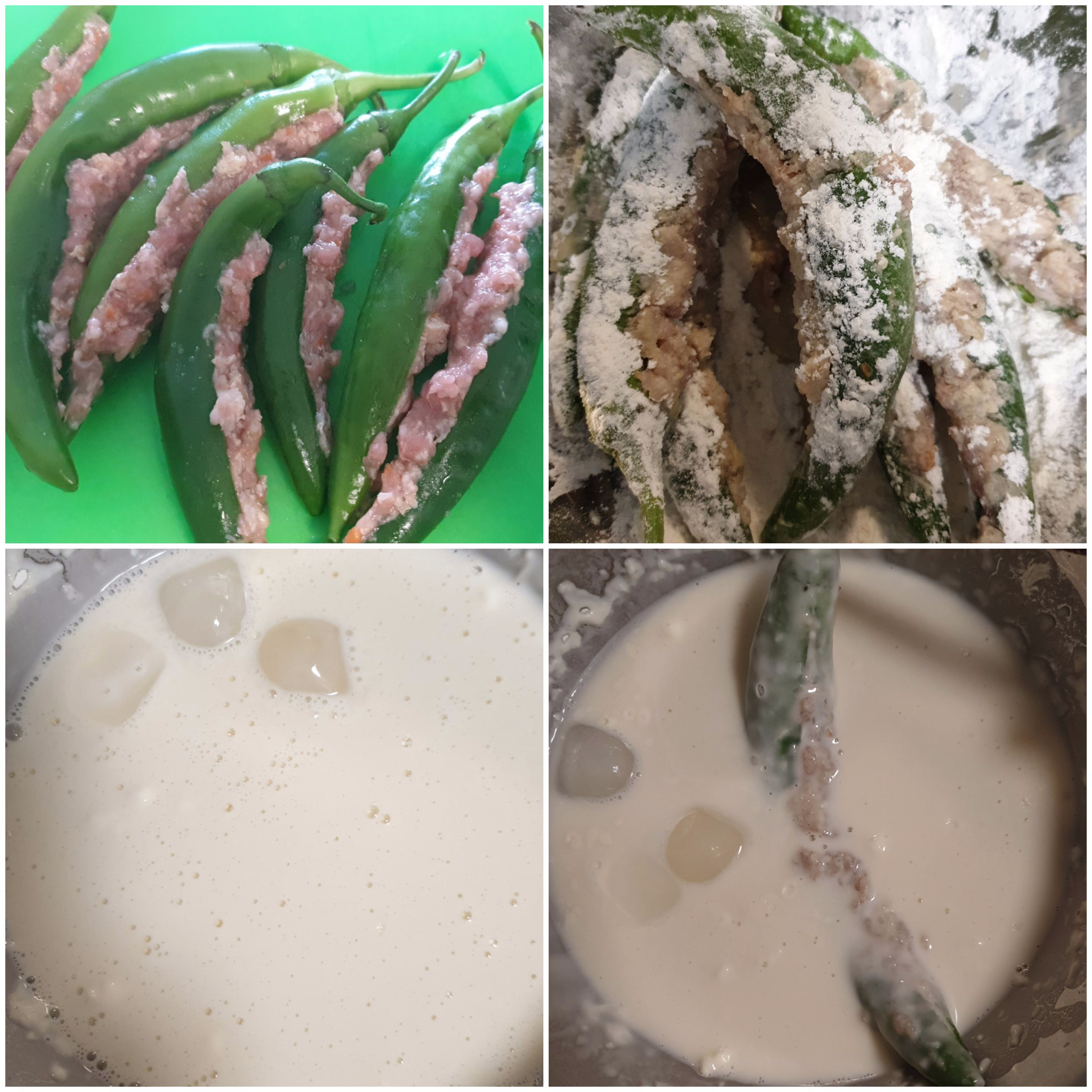 만들어 놓은 고기소를 갈라놓은 고추 사이로
