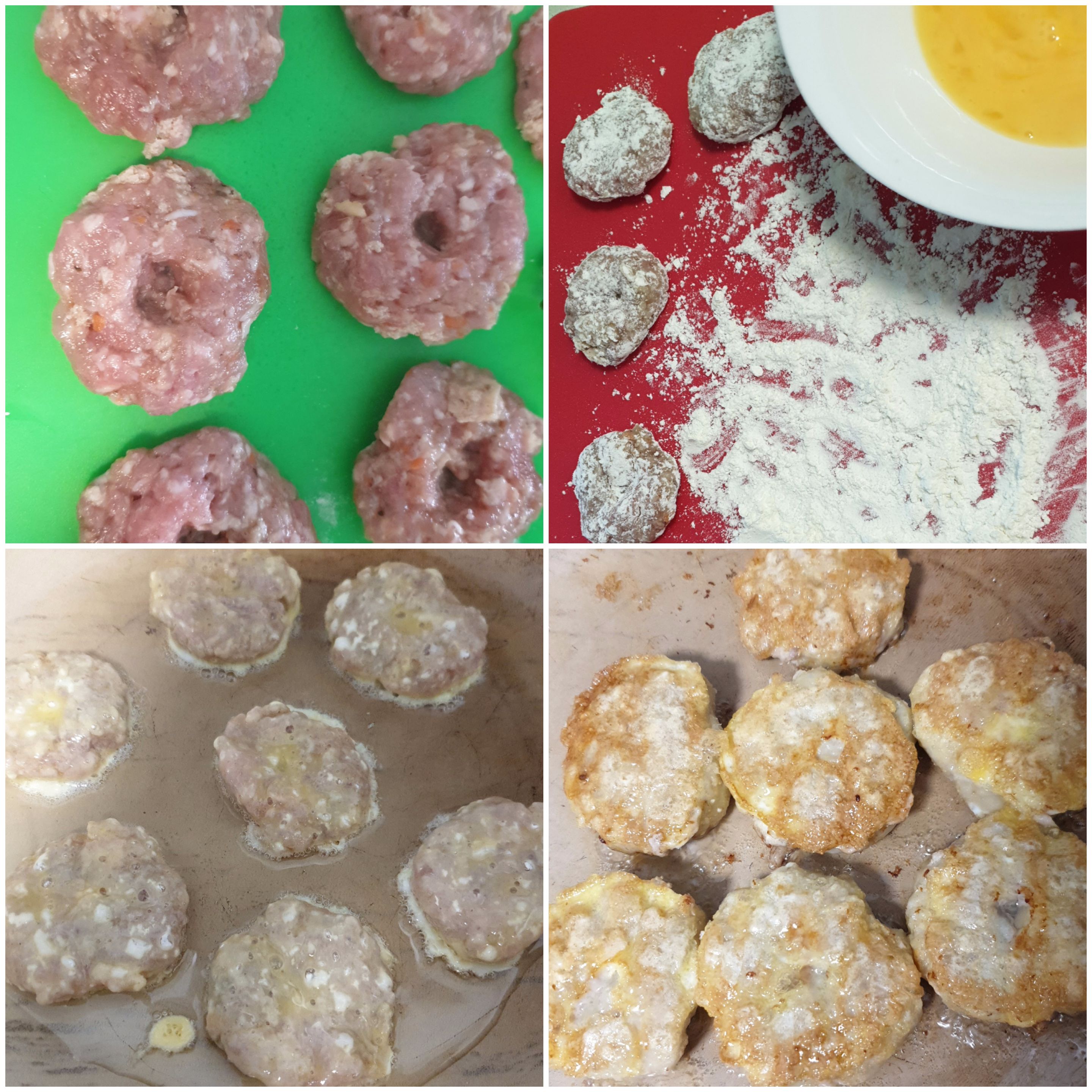 재료- 돼지고기 다짐육, 다진 야채, 다진 마늘, 후추, 간장, 소금, 두부, 계란