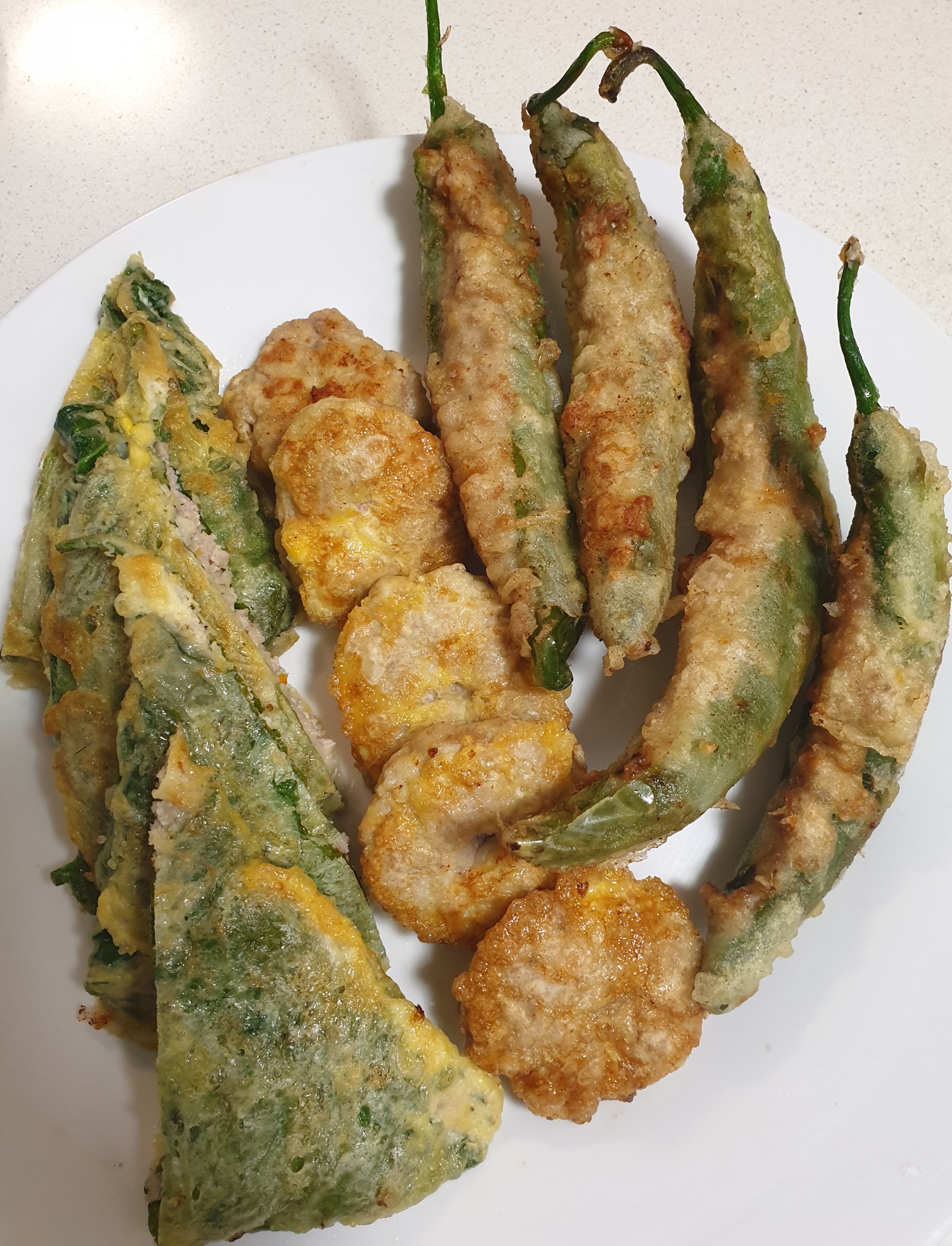 깻잎전과 동그랑땡, 고추튀김 까지 모두 완성됐어요