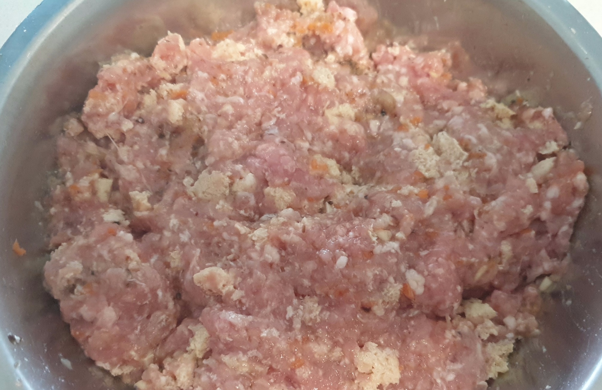 돼지고기 다짐육 500g에 야채 다져 넣고