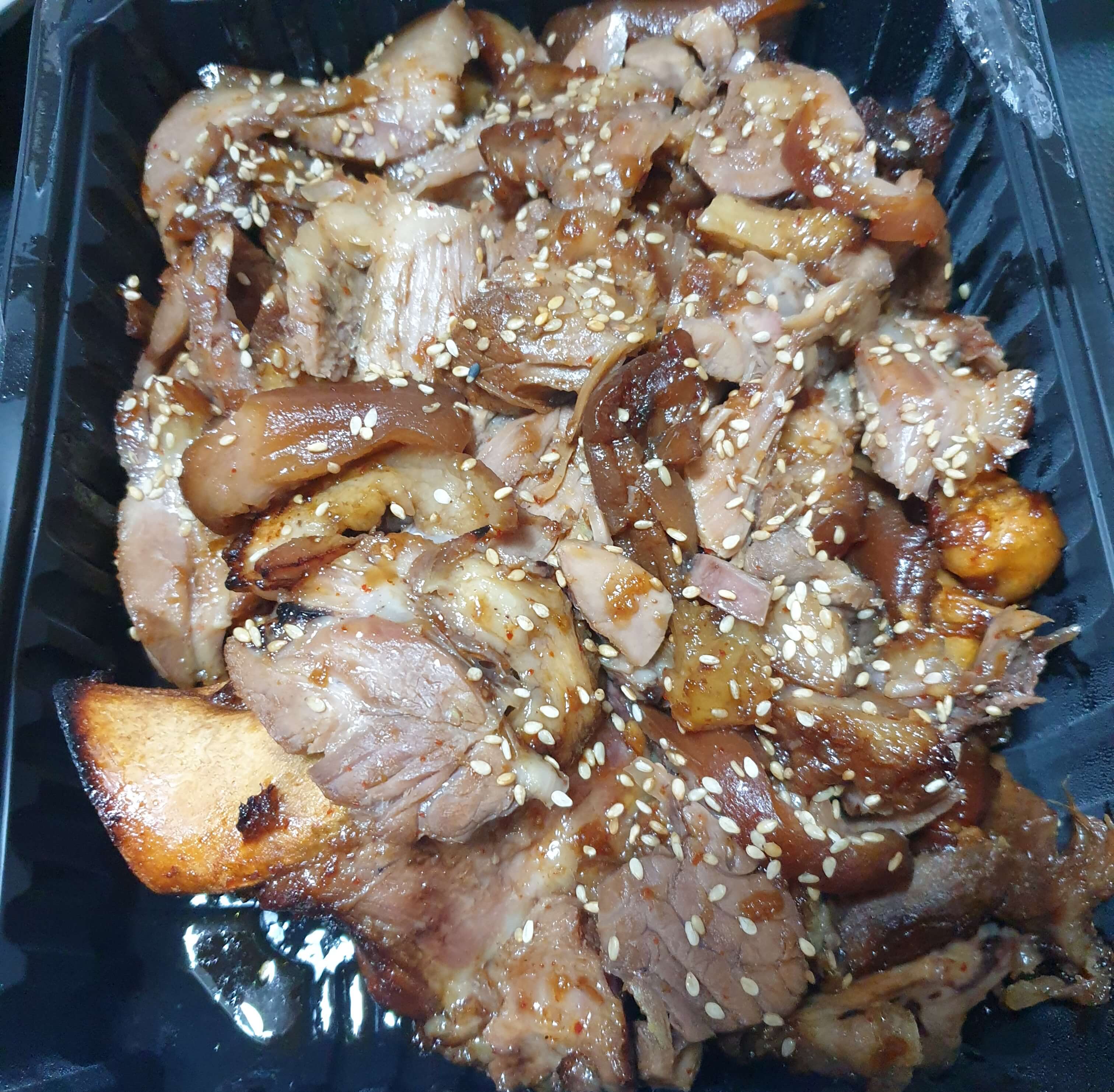 화덕족발 바베큐맛, 예전에 처음에 먹었을 때 보다 구운 맛은 덜 났지만 그래도 맛있었다.