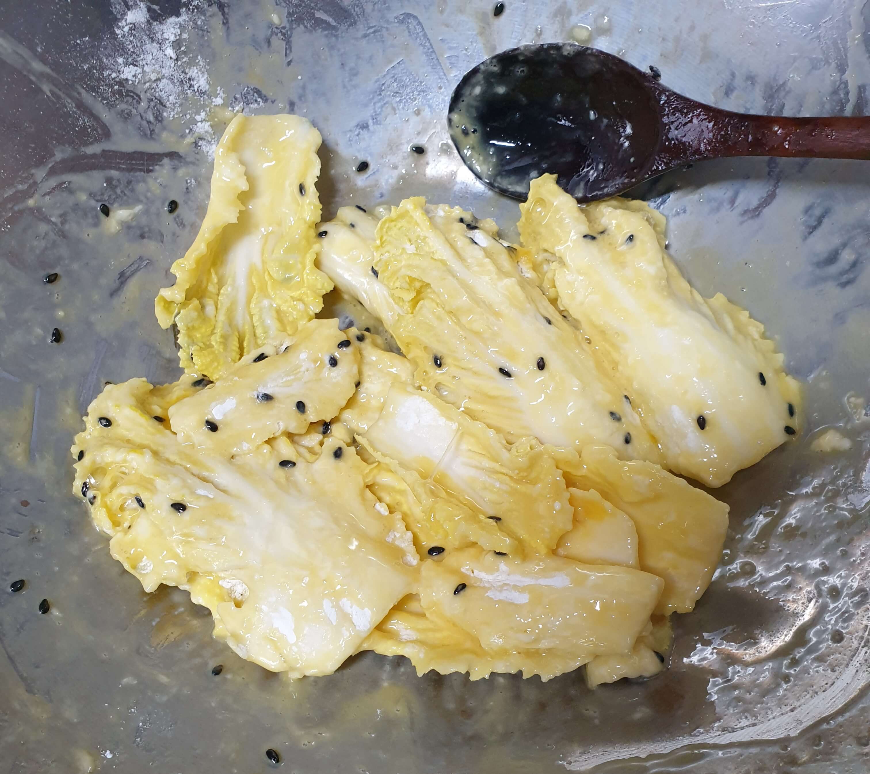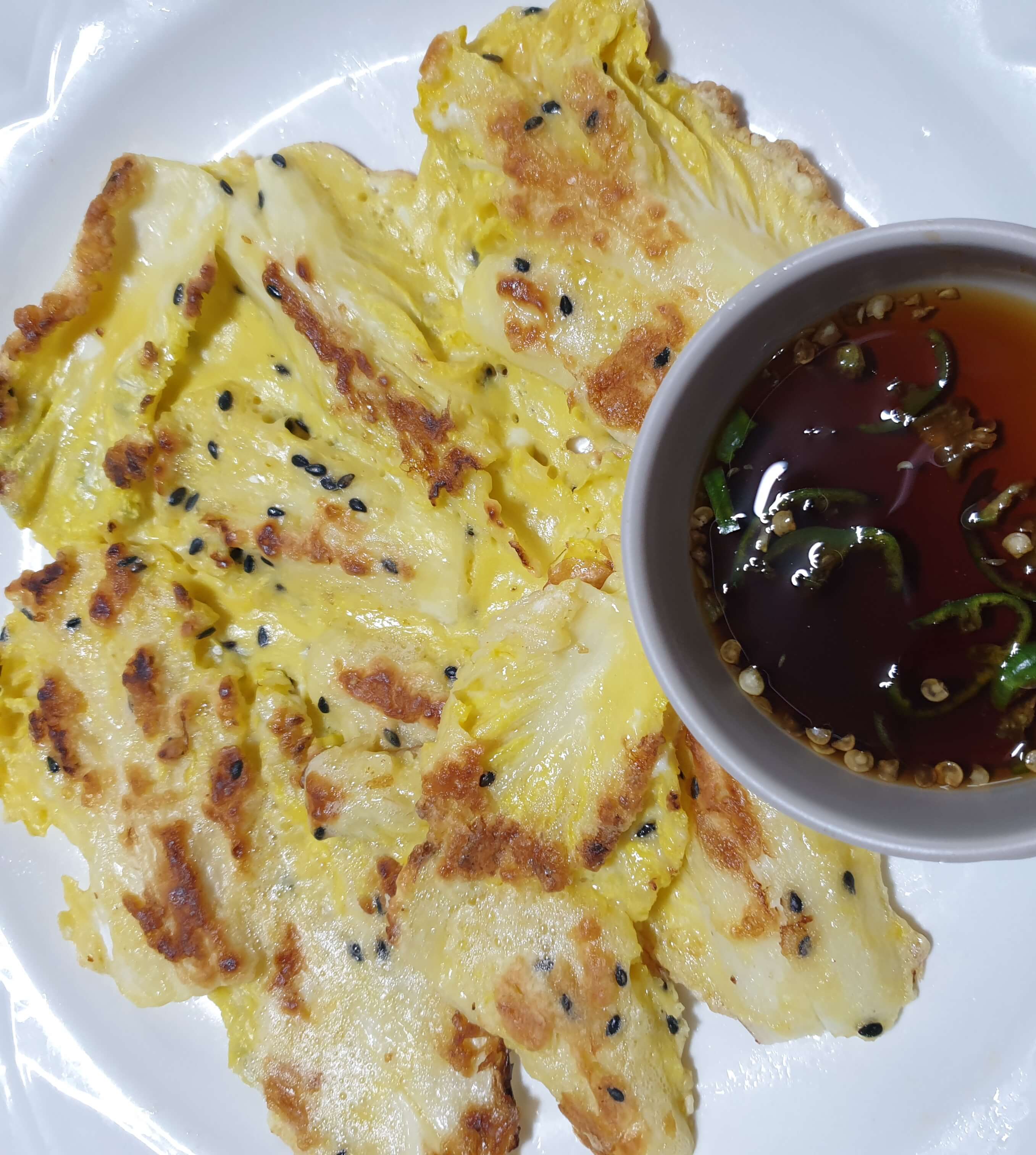 평소에 밀가루 반죽으로 배추전을 부쳐 먹었는데