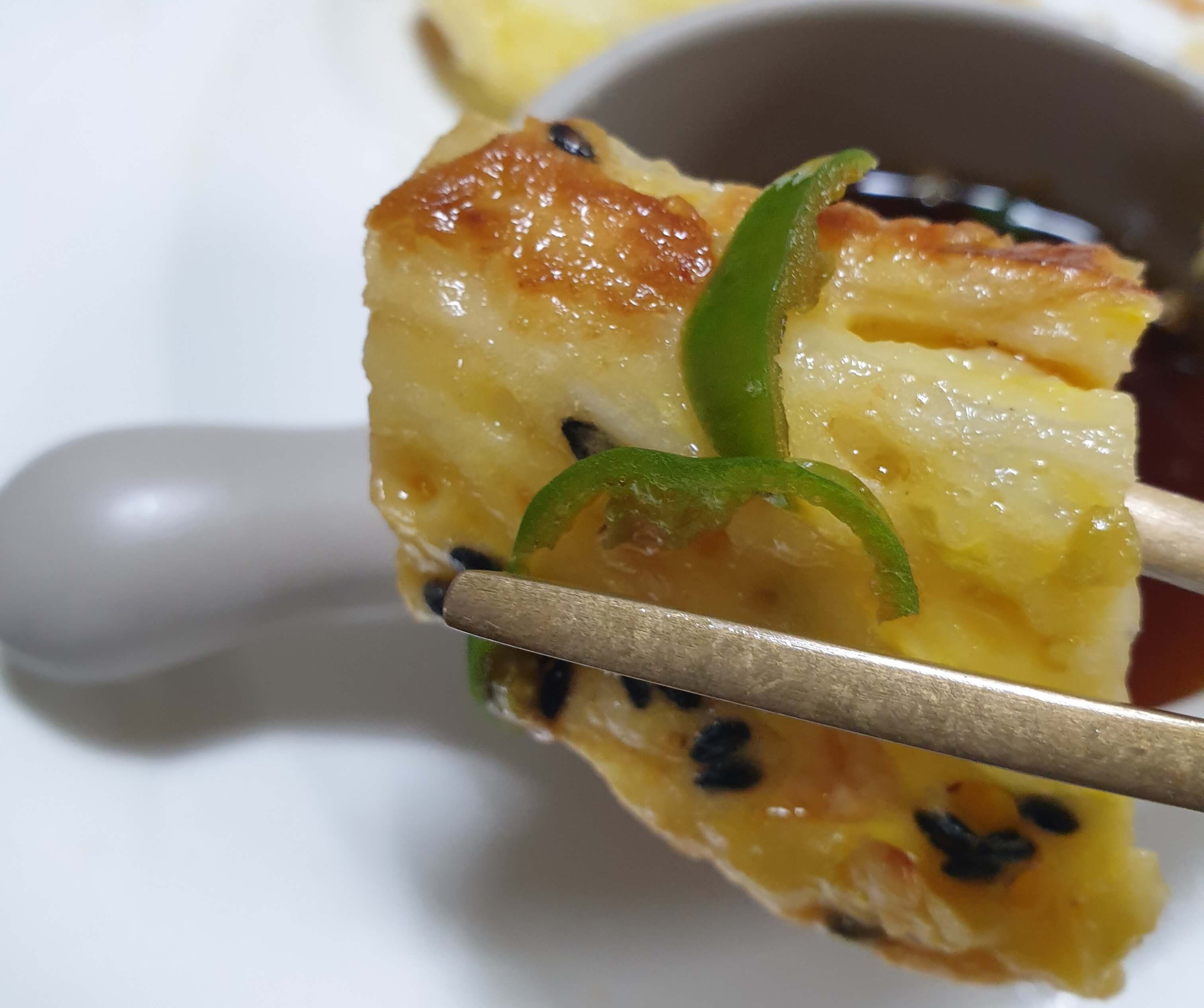 계란물로 부쳐내니까 더 맛이 좋네요.