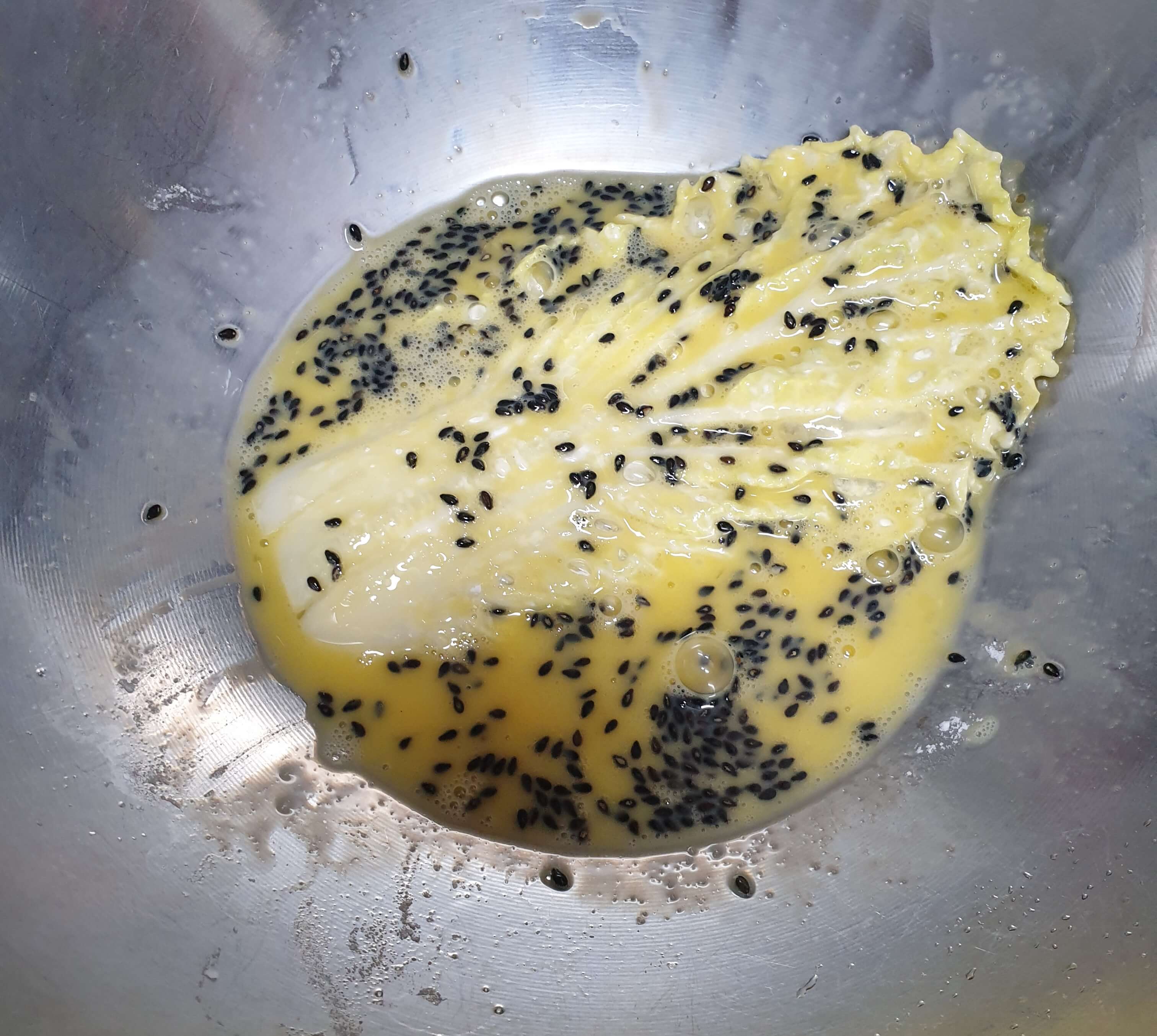 검은깨를 계란물에 섞어 사용해 보았어요.